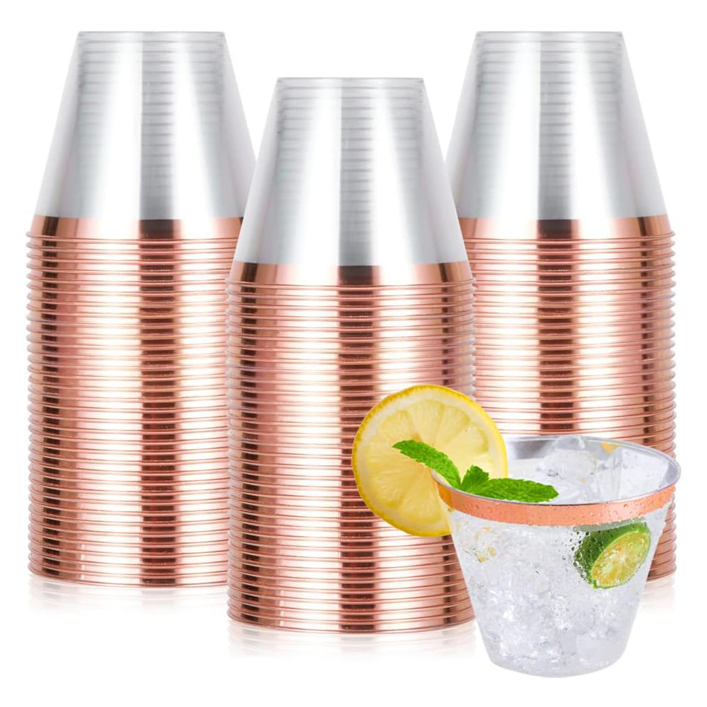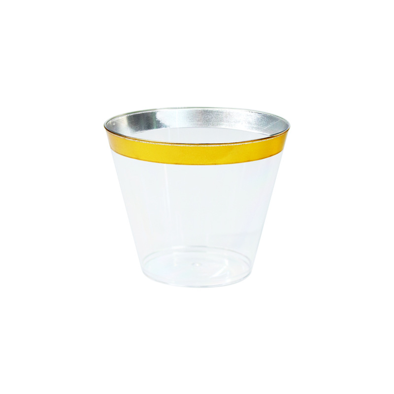 Amazon Wholesale 9oz Hot Silver Plastic Cup Disposable Wine Glass Golden Wine Western Food Cup Ice-cream Cup