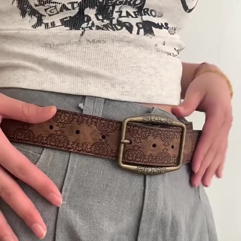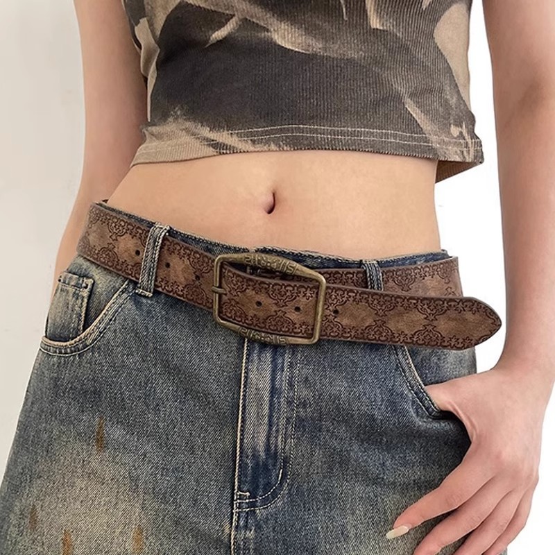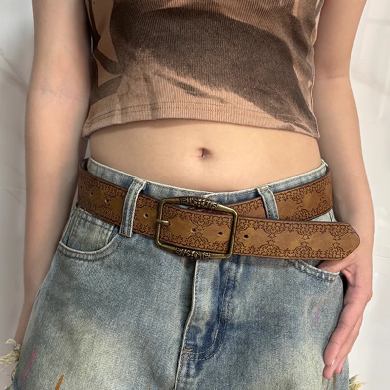 American Belt Men's Belt Y2K Women's 2025 New Style Young Hot Girl with Skirt High-End Trendy Retro Brown