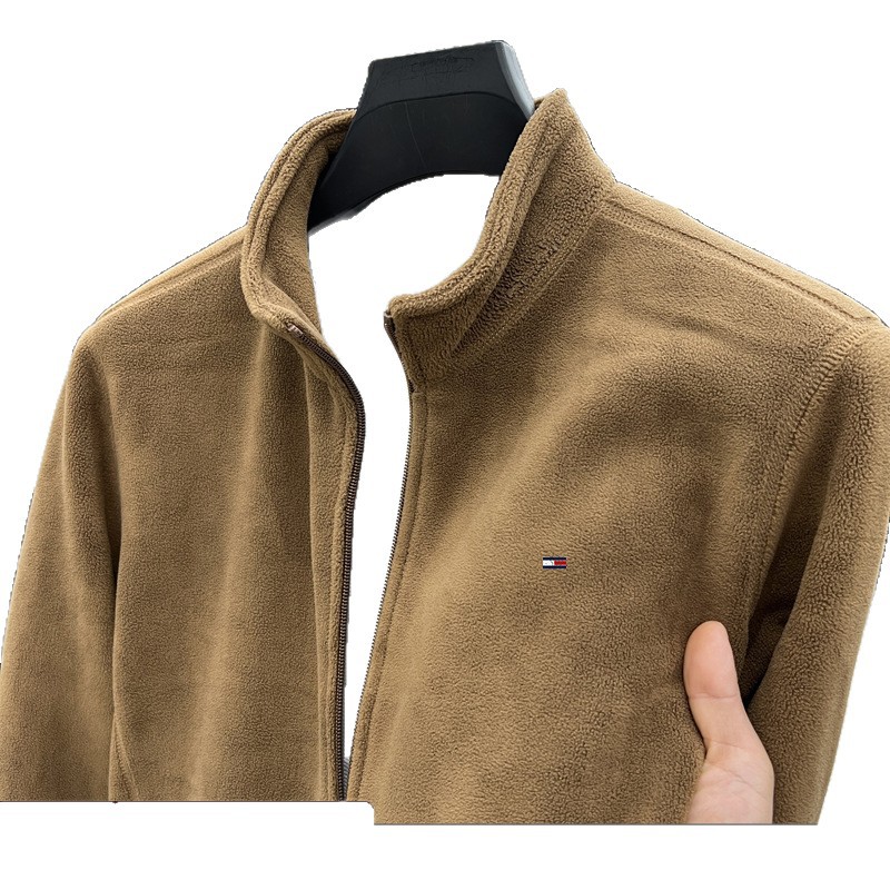 American Genuine Tommy Pure Color Men's Fleece Jacket Polar Fleece Cardigan Autumn and Winter Warm Sweatshirt Casual Jacket Trendy