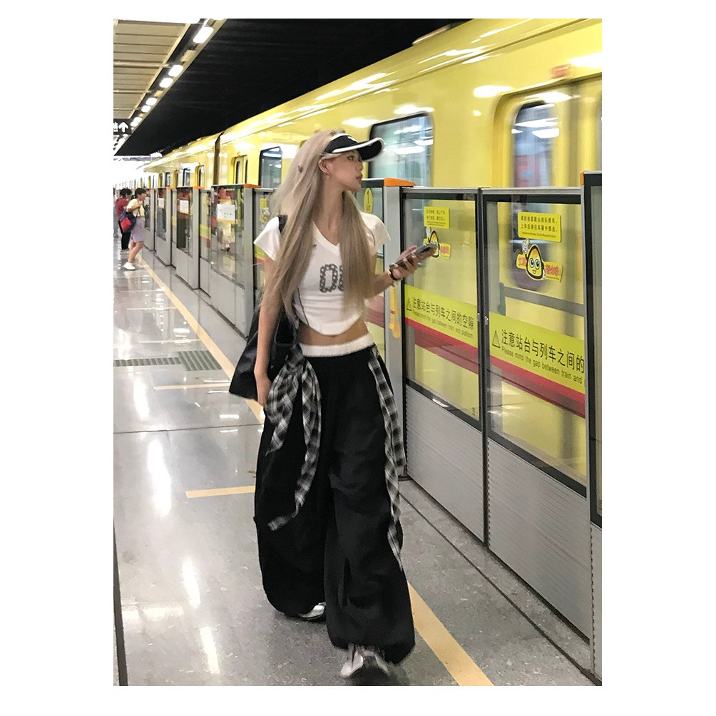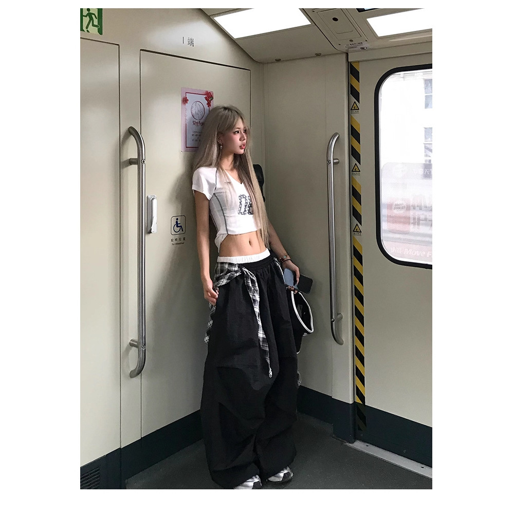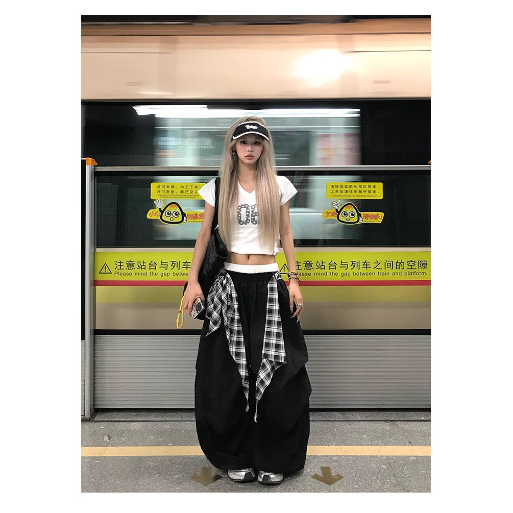 American Hip-Hop Street Dance Layered Detachable Wide-Leg Pants for Women Summer Loose Drape Scimitar Casual Pants Jazz Dance Pants