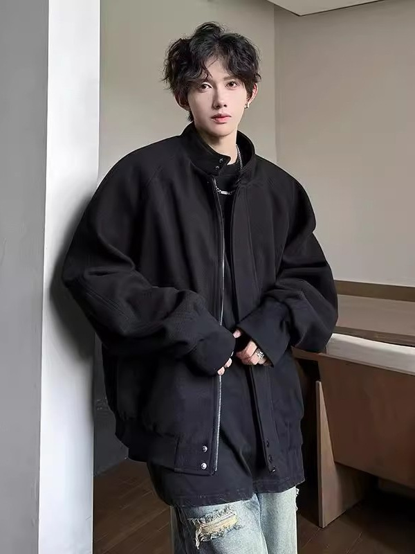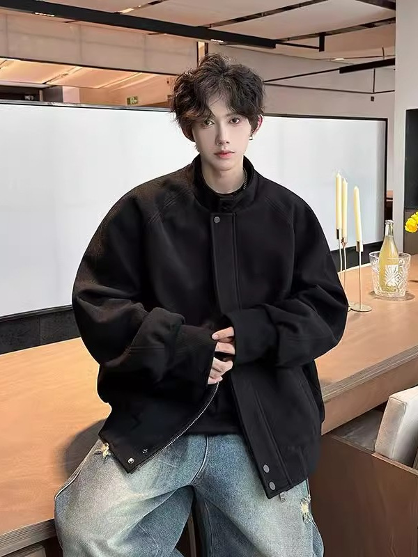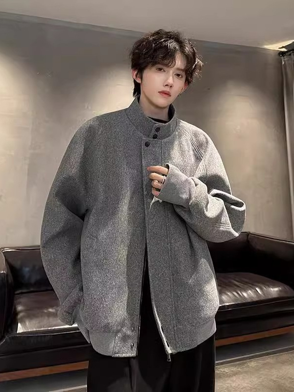 American-style gray stand collar woolen coat men's autumn and winter ruffian handsome woolen coat short Korean silhouette suit jacket