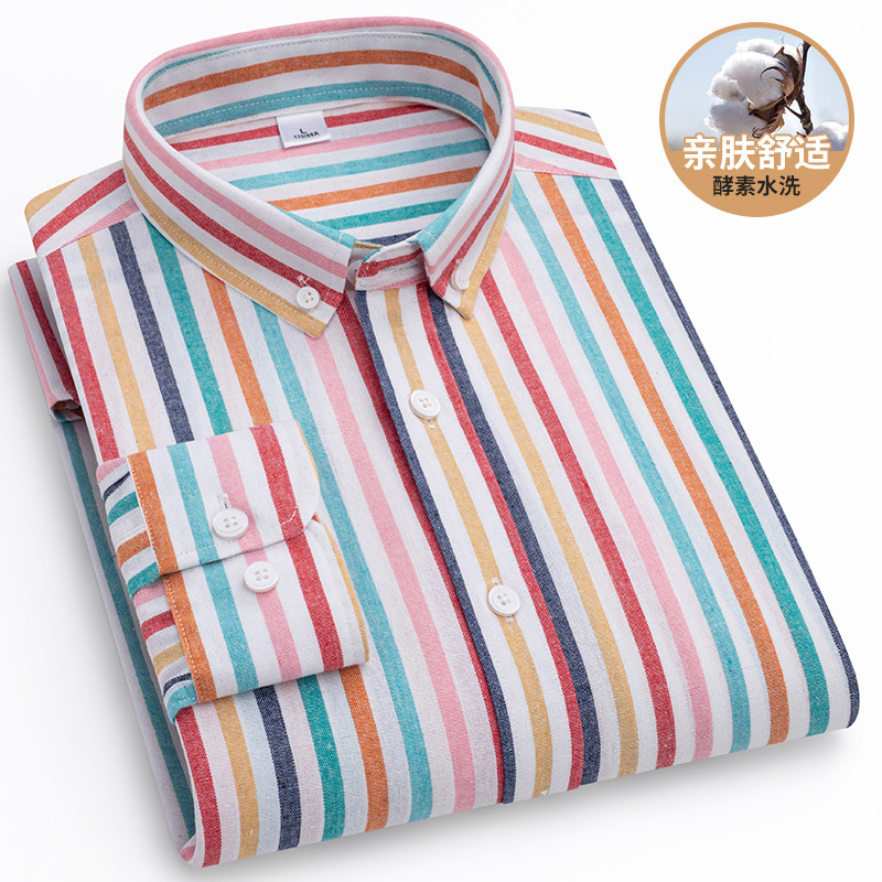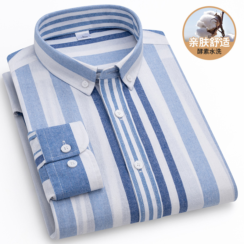 American Style Heavy Blue and White Striped Shirt Long Sleeve Men's Autumn Loose bf Boyfriend Style Casual Shirt Pure Cotton Thin Jacket