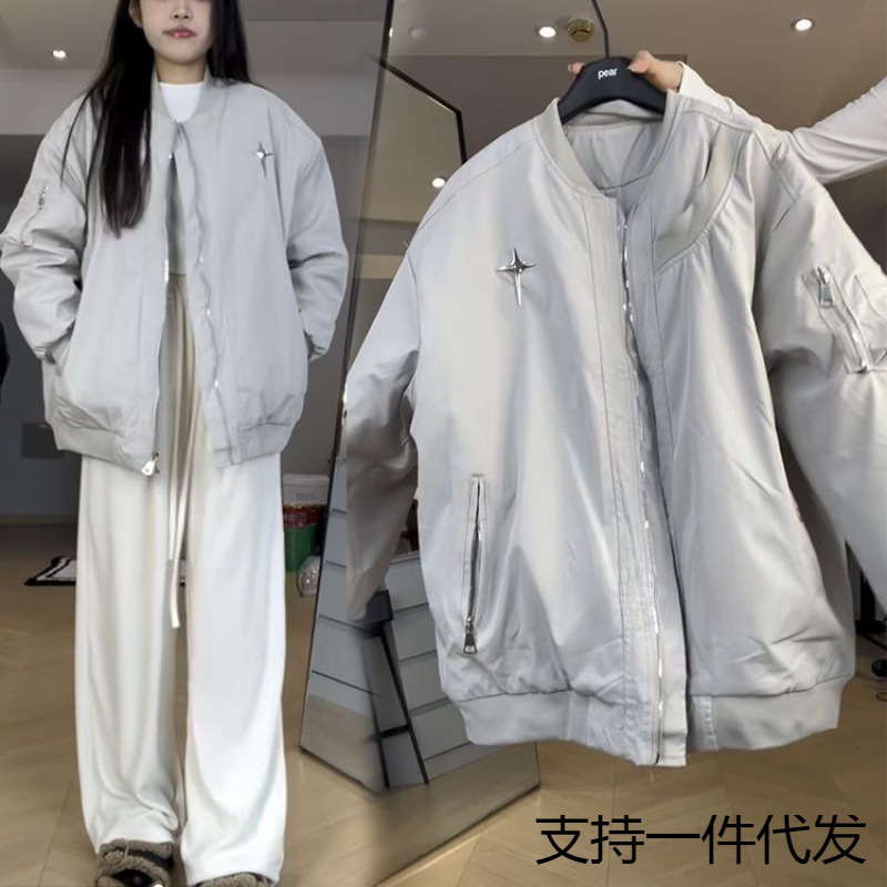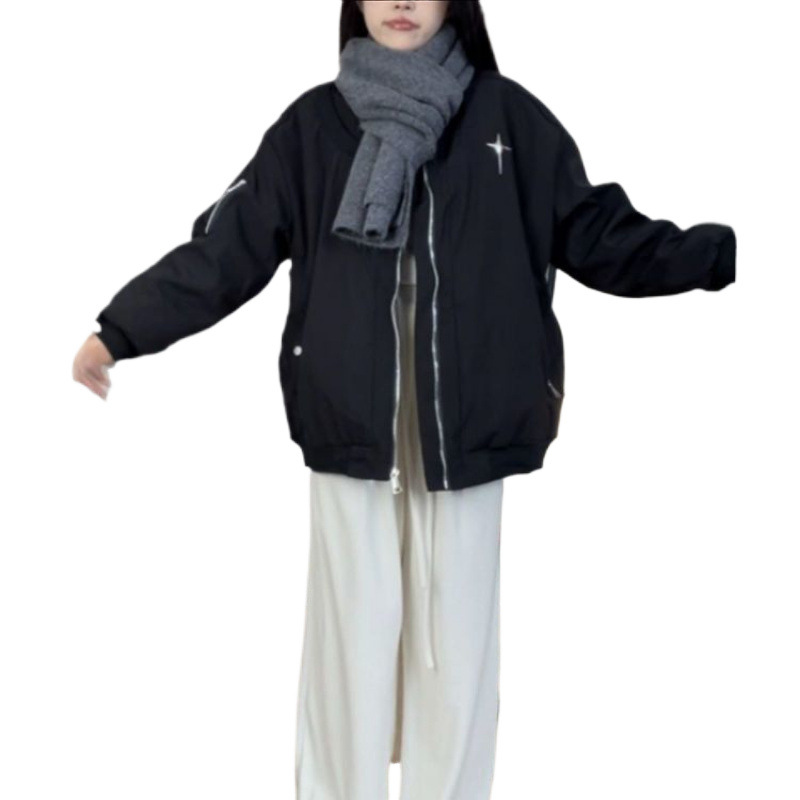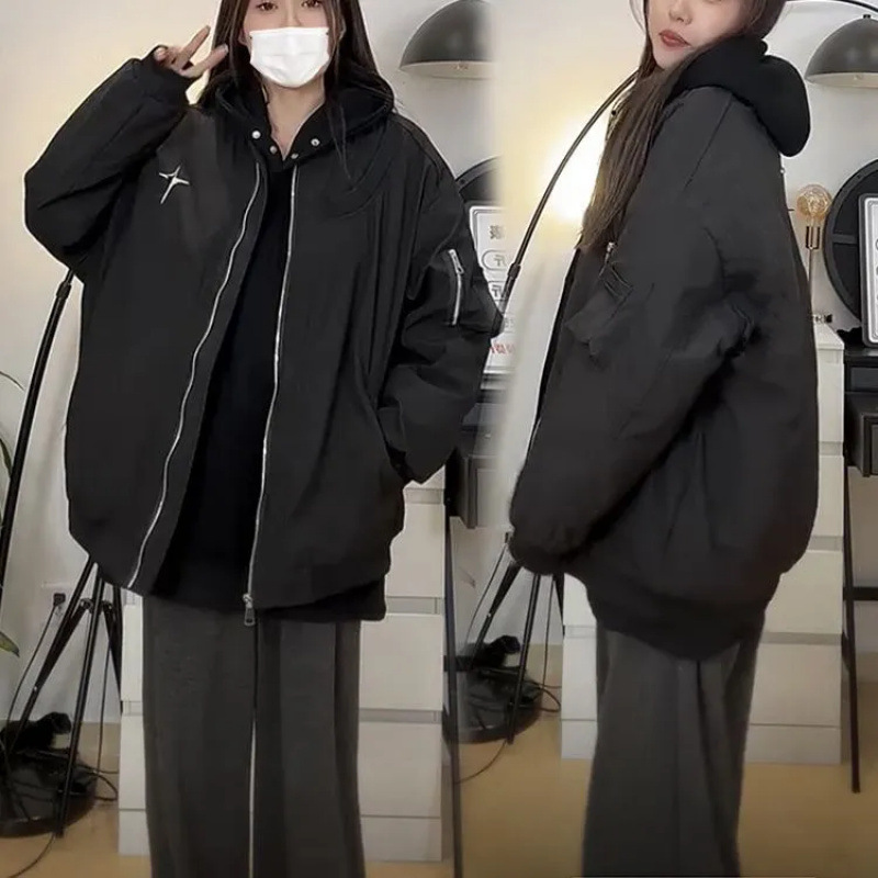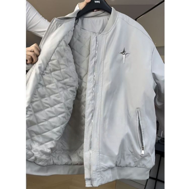 American High Street Quilted Thickened Pilot Spring and Autumn Jacket for Women Trendy Couple Baseball Jacket Cotton Coat Ax