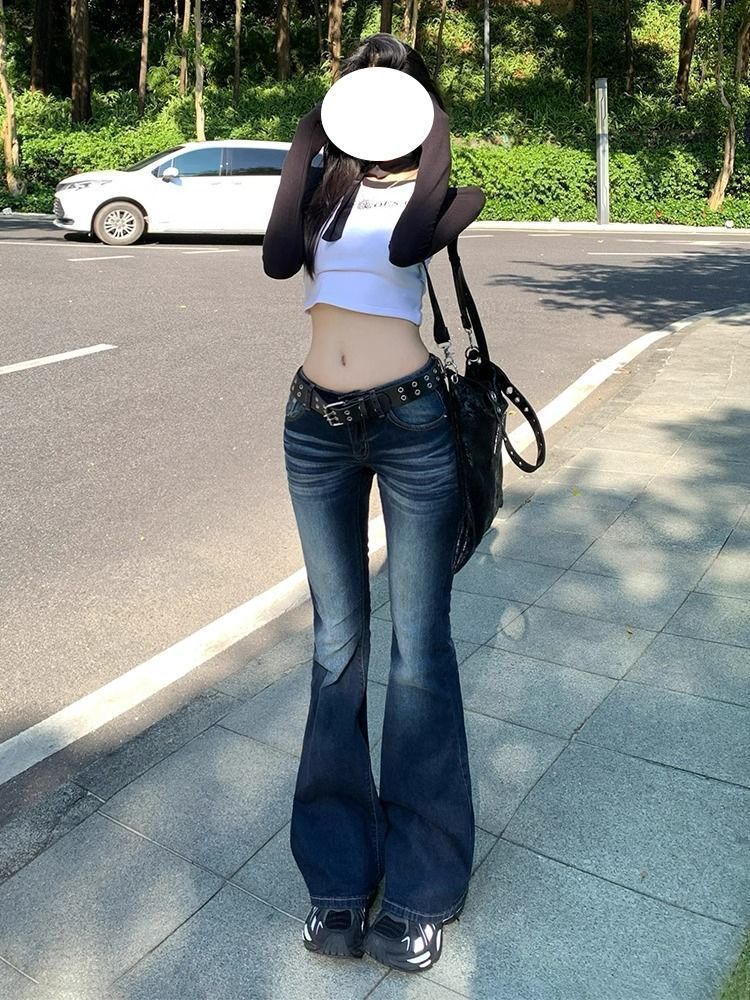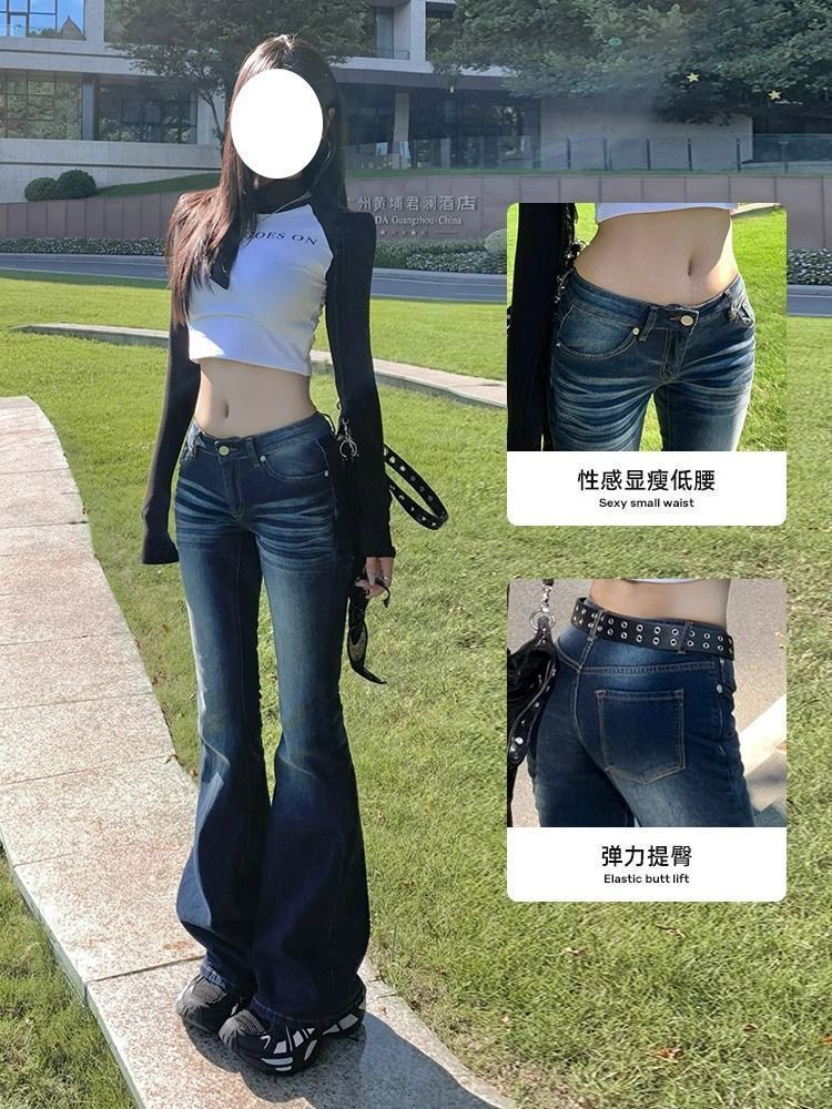 American Style High Waist Micro-flared Jeans Women's New Vintage Spice Girls Stretch Slim-fit Slim-fit Horseshoe Trousers