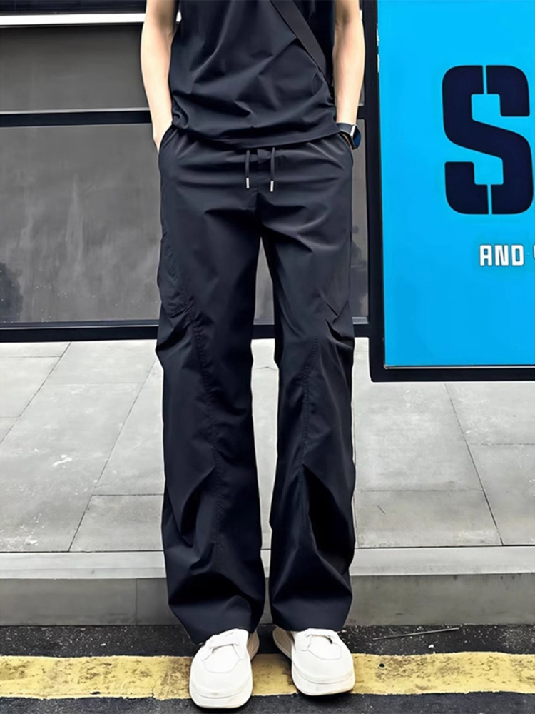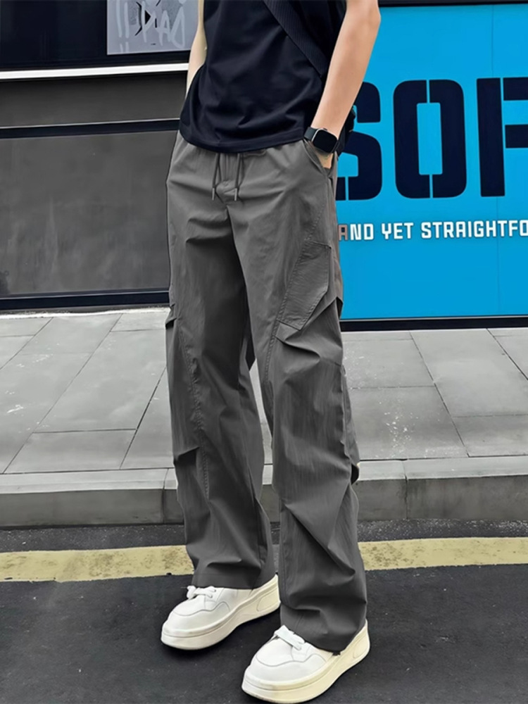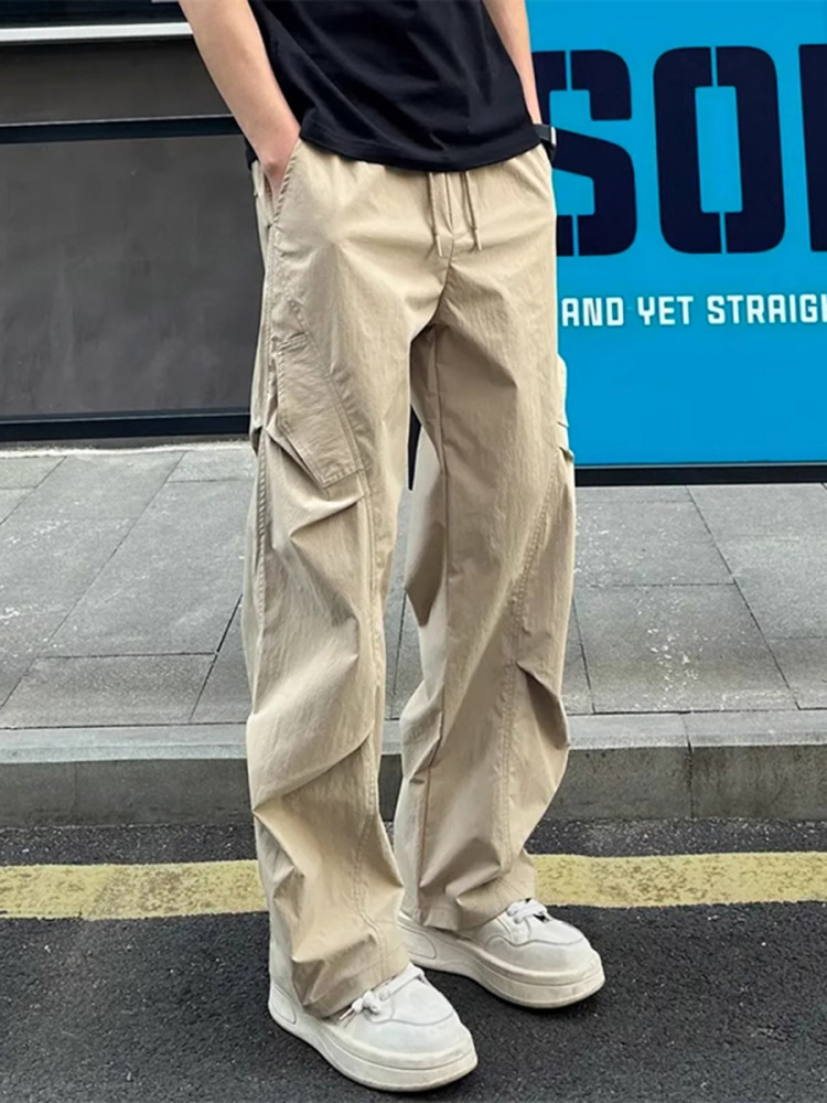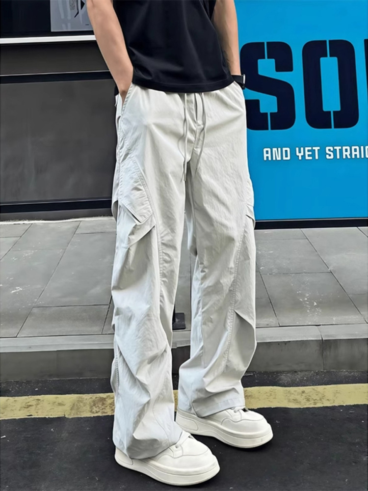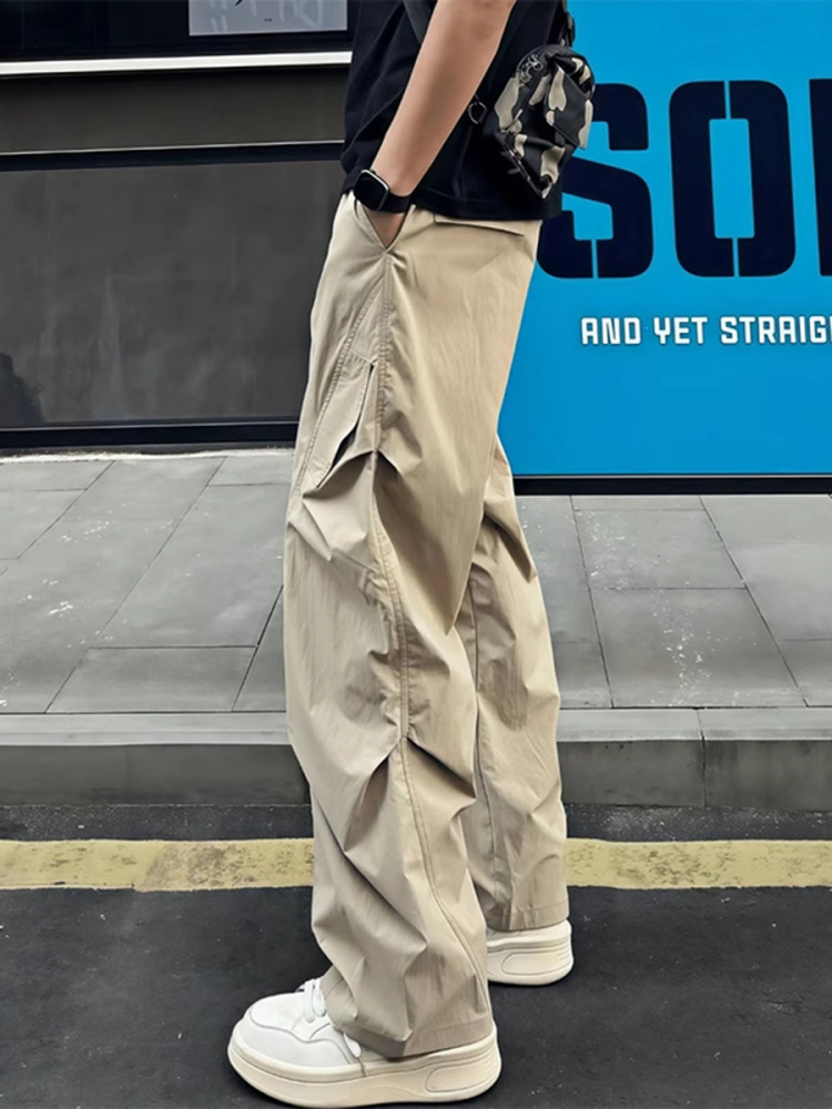 American-Style Ice Silk Quick-Dry Pants for Men, Summer Thin Pleated Paratrooper Cargo Pants, Drapey Casual Loose Sun-Protection Pants