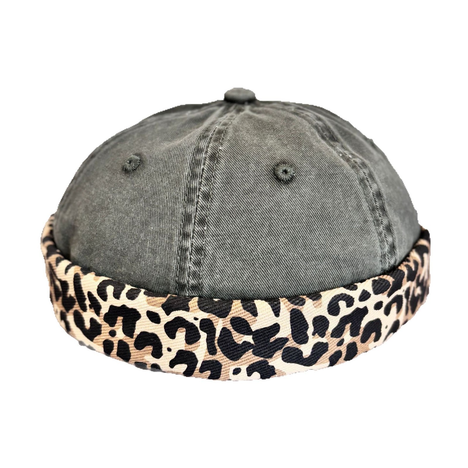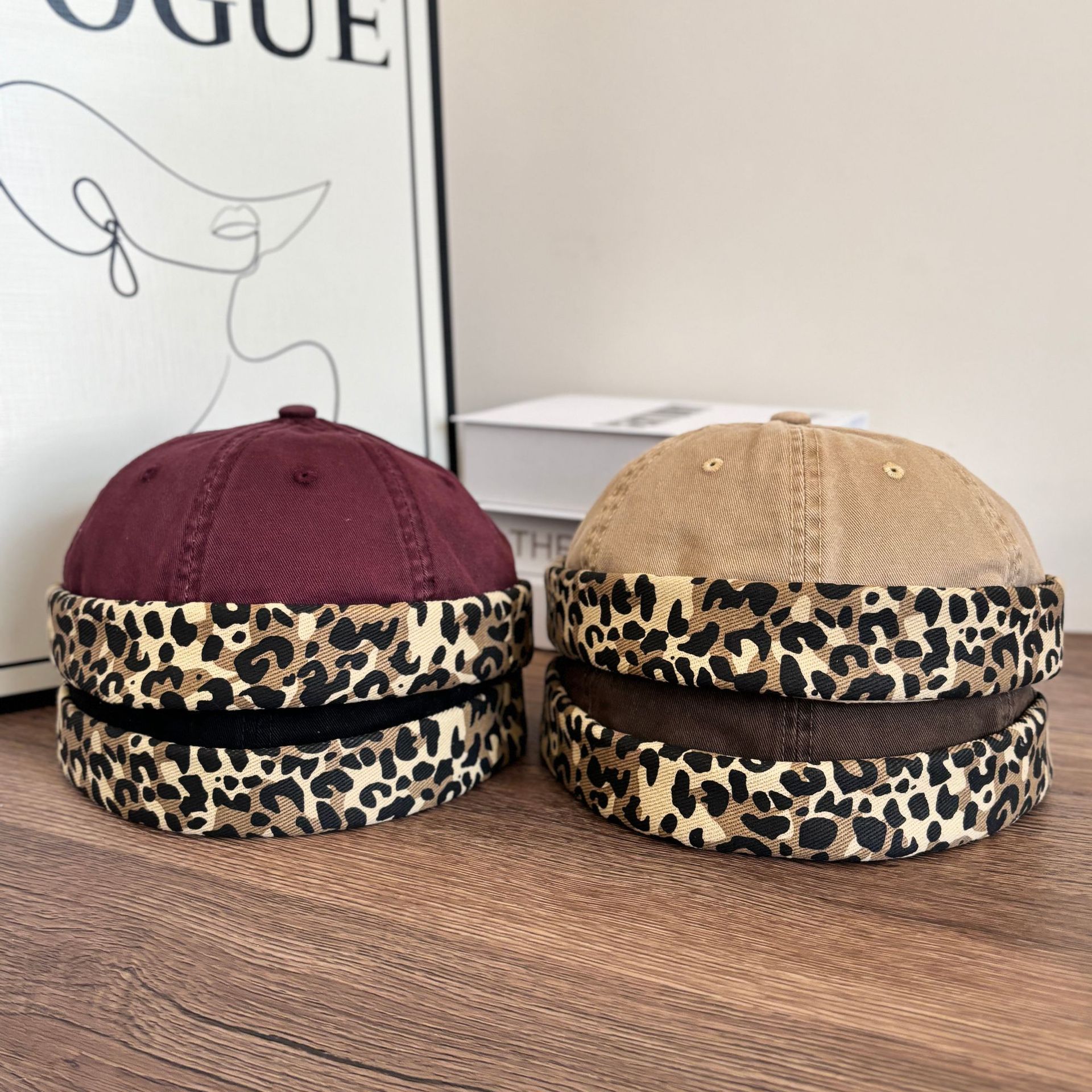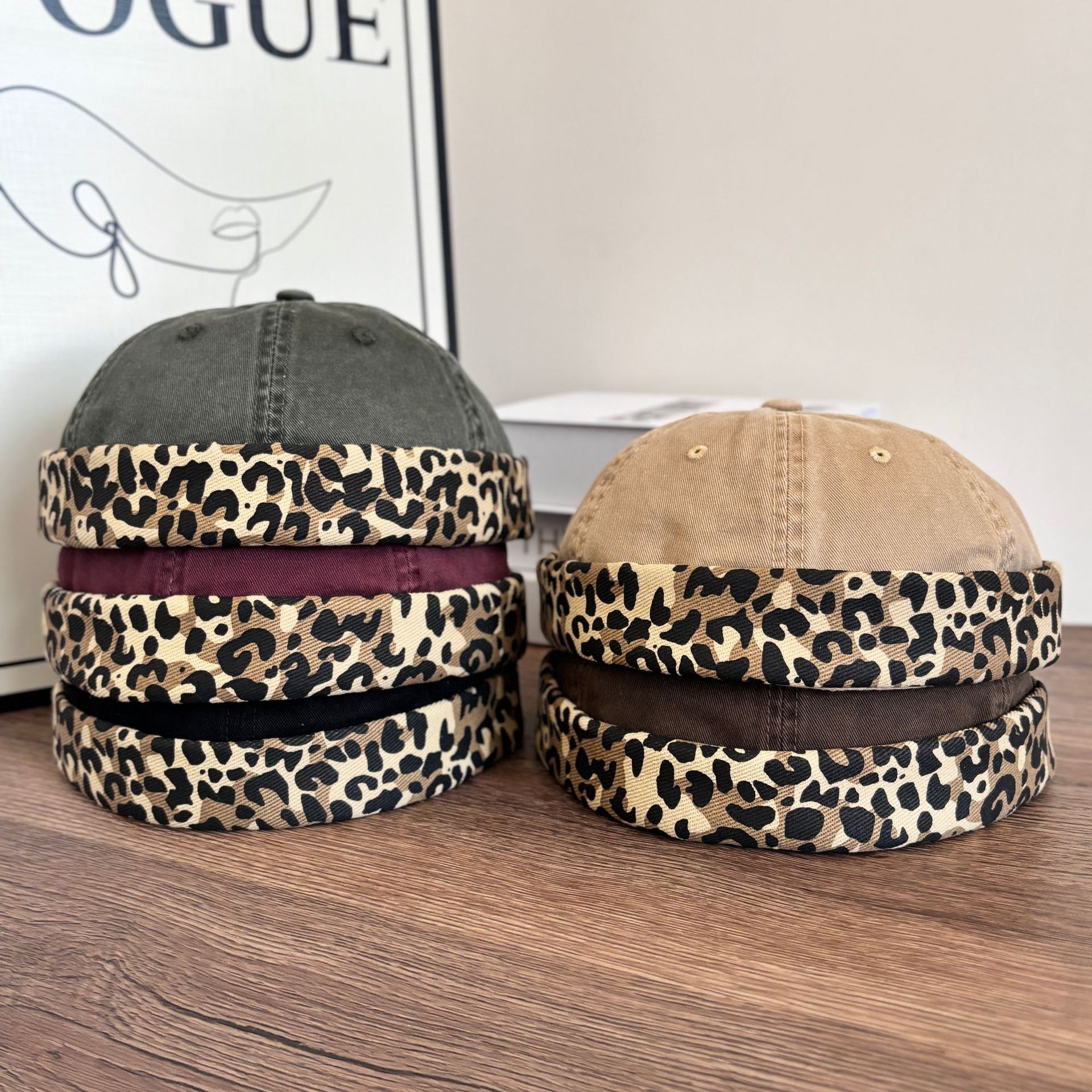 American-style Leopard Print Stitching Washed Old Home Style Hat Men's Beanless Hip-hop Beanie Hat Women's Outdoor Sports Melon Hat