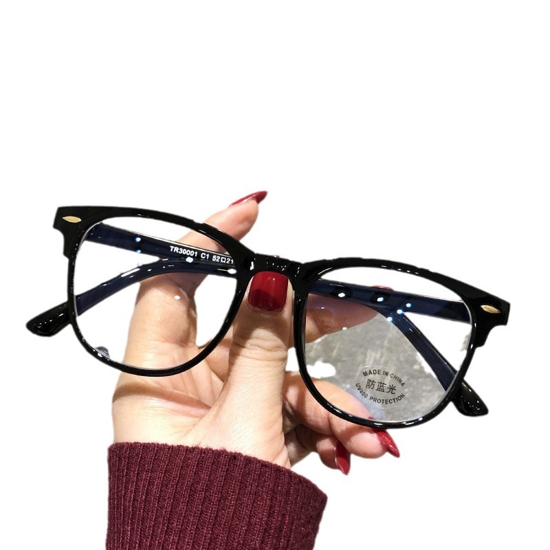 Anti-Blue Ray anti-radiation black frame glasses women's plain face slimming ultra-light TR90 large square plain myopia glasses frame men
