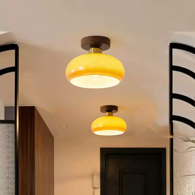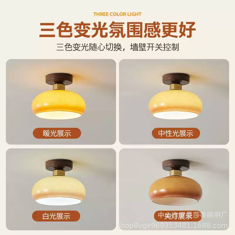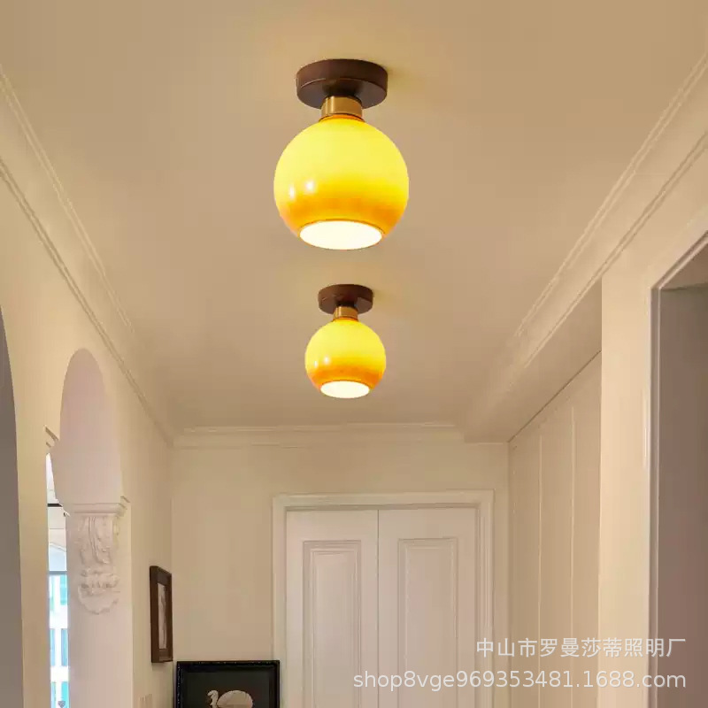 Antique Corridor Light Entrance Balcony Ceiling Light American Style Retro Walnut Cloakroom Lamps