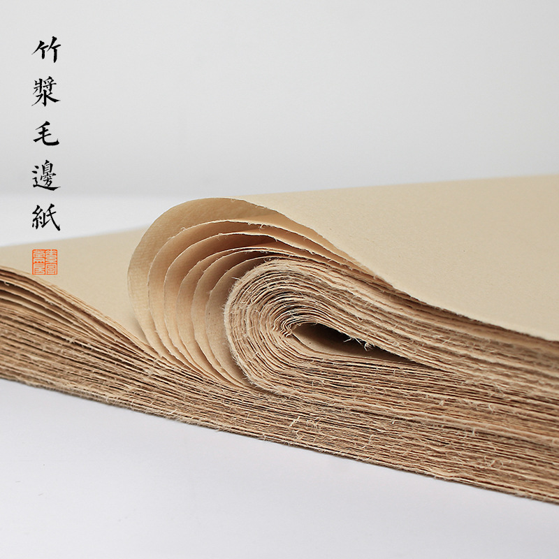 Antique Raw Edge Paper Calligraphy Practice Special Thickeneded Half-cooked Bamboo Pulp Paper Beginner Brush Practice Paper Folio Whole Sheet