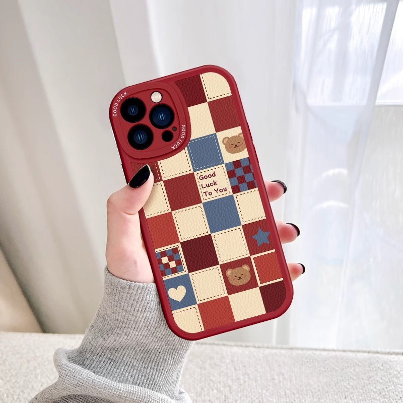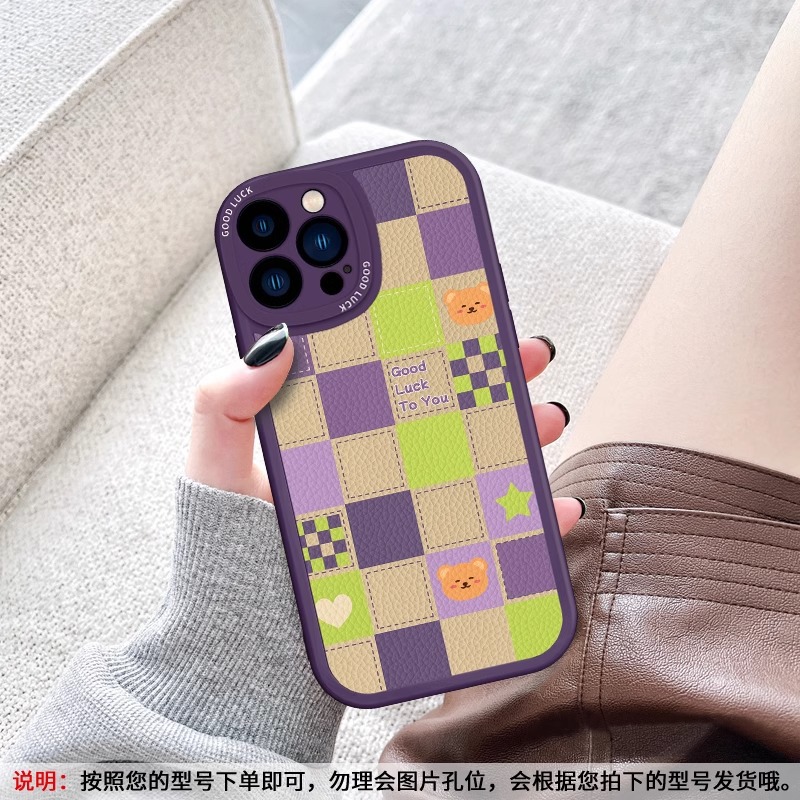 Suitable for Apple 17Promax Mobile Phone Case 16Plus Painted Lambskin 15Pro Plaid Bear 14 Protective Cover
