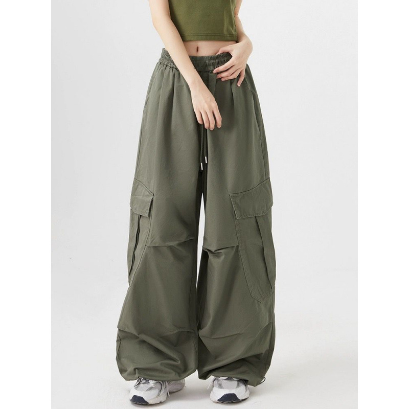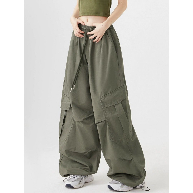 Army Green Cargo Pants for Women Spring and Summer Ins American Dance Pants High Waist Loose Straight Casual Wide Leg Pants for Men