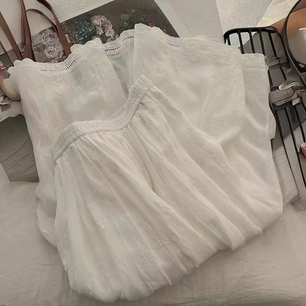 Artistic Super Fairy Cotton and Linen Embroidered White Skirt Women's Early Spring New A- Line Long Skirt Slimming Elegant Overskirt Spring and Summer