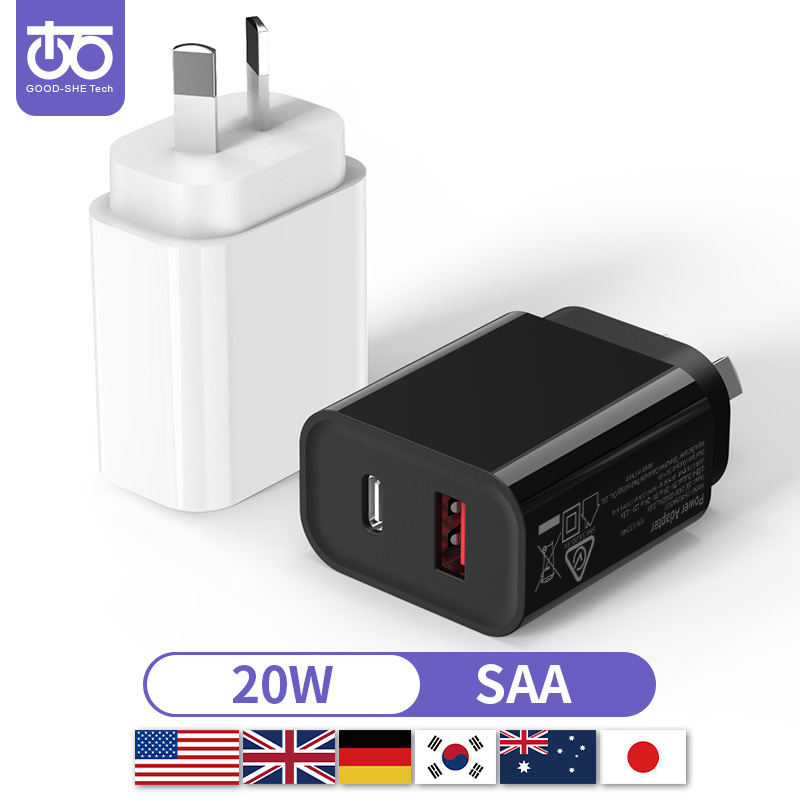 Australian PD20W charging head A C Australia SAA certification fast charging dual USB sappy 30W mobile phone charger
