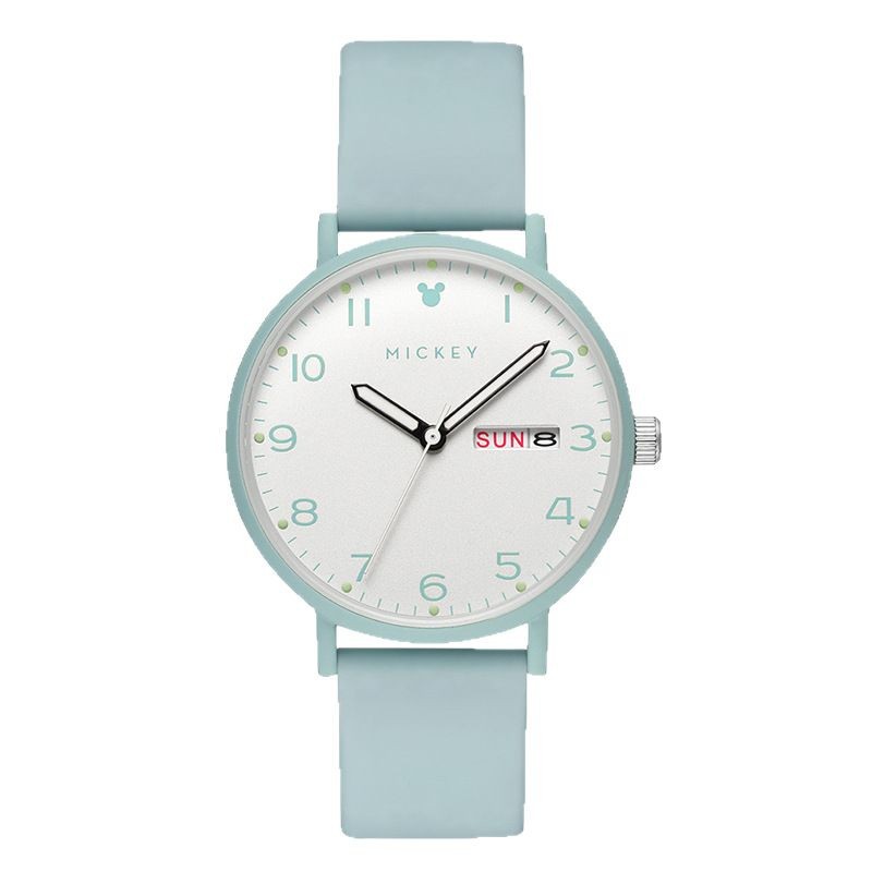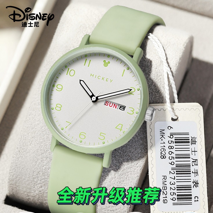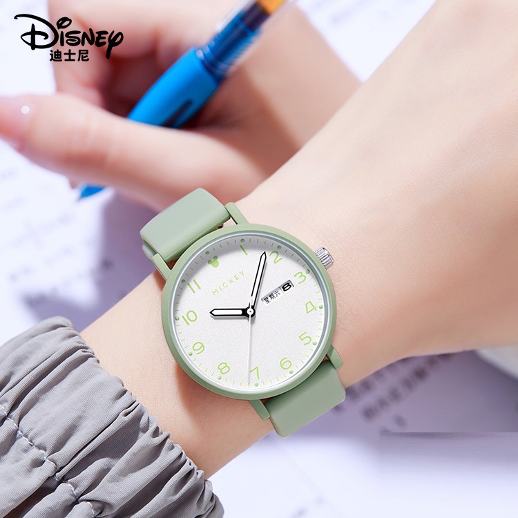 Authentic Disney Men's and Women's Watches Small Fresh Silicone Band Dual Calendar Luminous Quartz Watch for Junior High School Students 2025