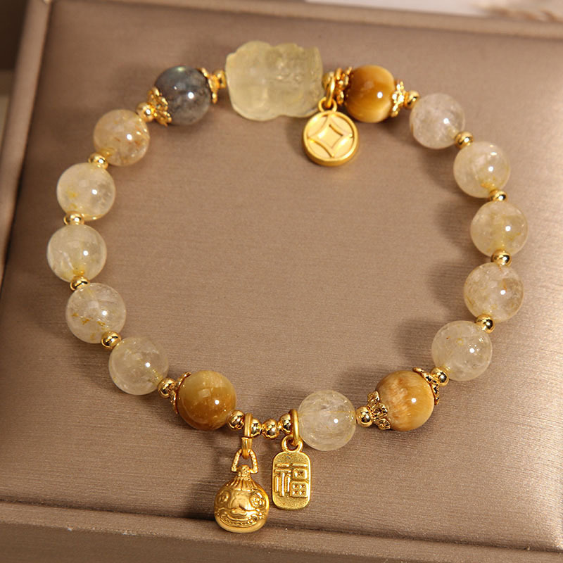 Authentic Natural Golden Crystal Crystal Moonstone Bracelet Female Gold Swallowing Beast Titanium Crystal Yellow Crystal Bracelet for Girlfriend