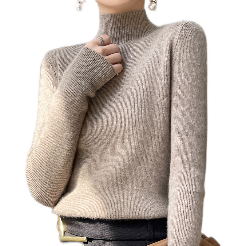 Autumn and Winter 2025 New Wool Base Shirt Sweater for Women, Slim Fit, Black Long-Sleeve Half-Turtleneck Knit Top
