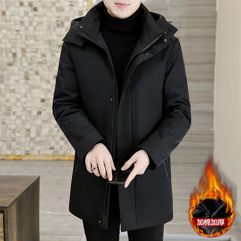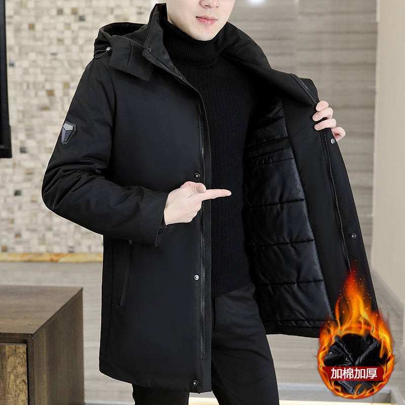 Autumn and Winter Coat Men's Windbreaker Men's Mid-length Jacket Cotton-padded Clothes Fashionable Parker Cotton-padded Clothes