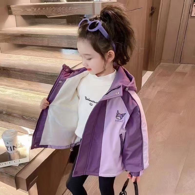 Autumn and Winter Female Baby Casual Western Style Cartoon Hooded Color fleece-lined Cotton Outgoing Windproof Jacket