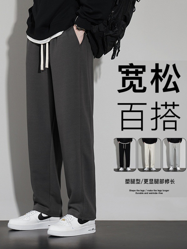 Autumn and Winter Fleece-Lined Men's Casual Pants, Sports Straight-Leg Trousers, Hong Kong Style Loose Wide-Leg Sweatpants, Men's Trendy Spring and Autumn Season