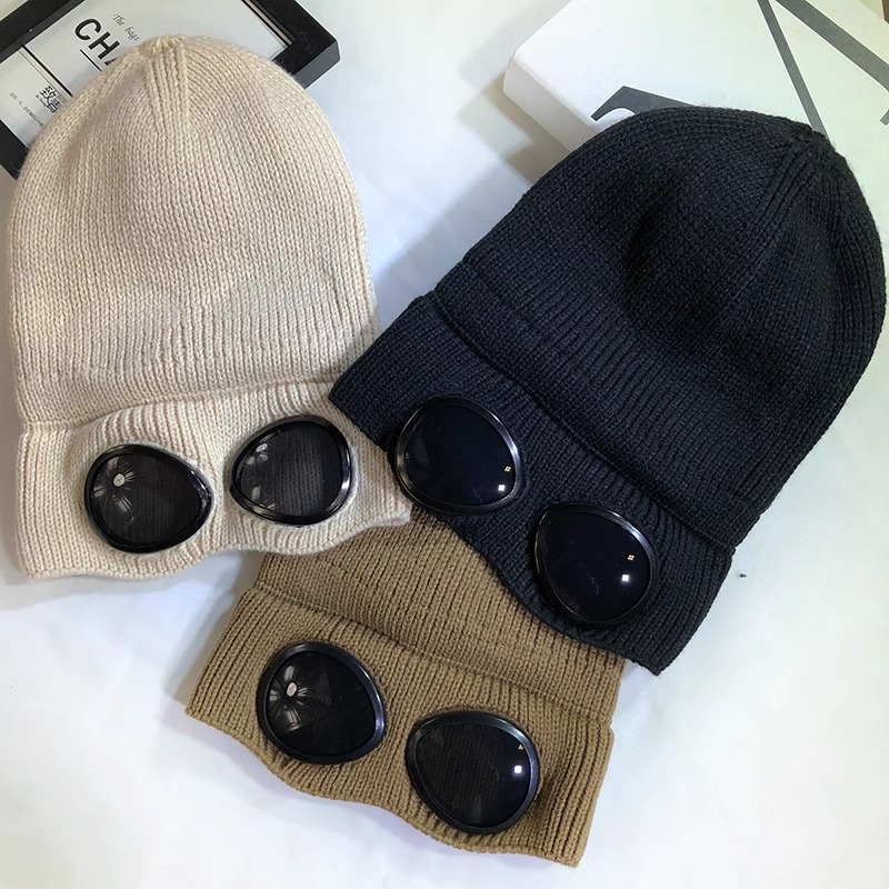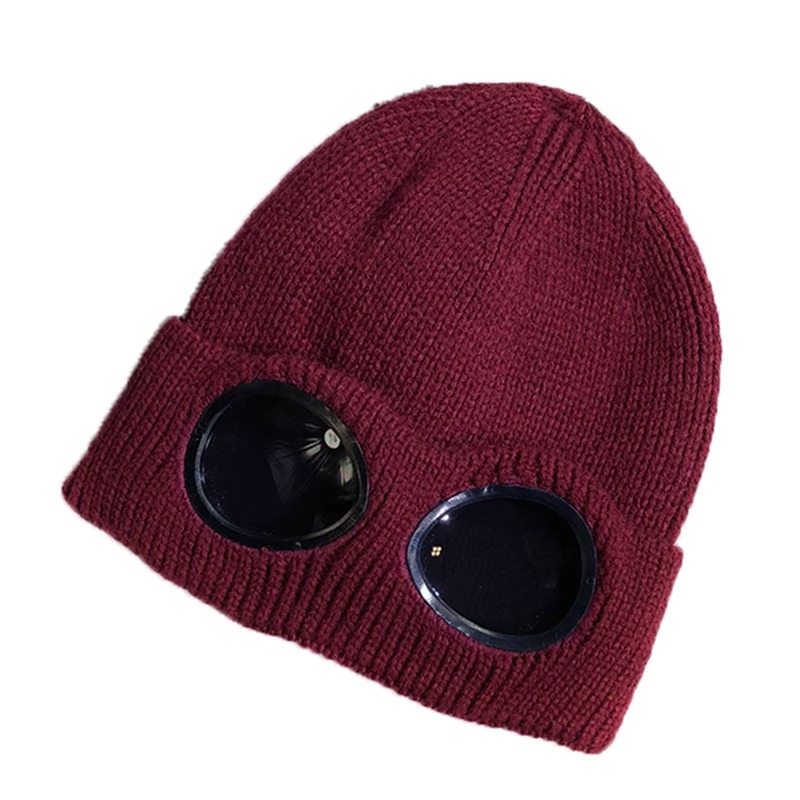 Autumn and winter hat women's glasses decorative wool hat pilot frog glasses warm ski fleece-lined thickened knitted hat men