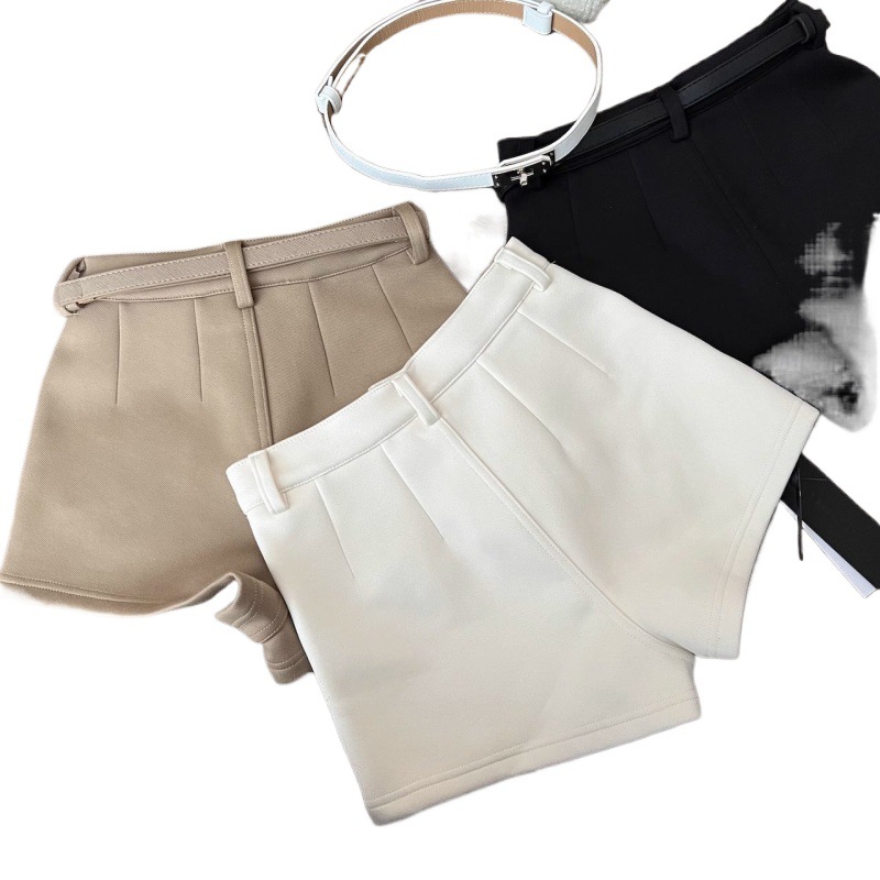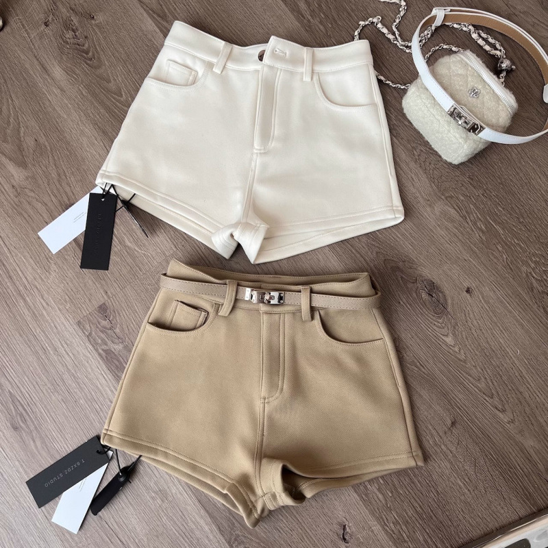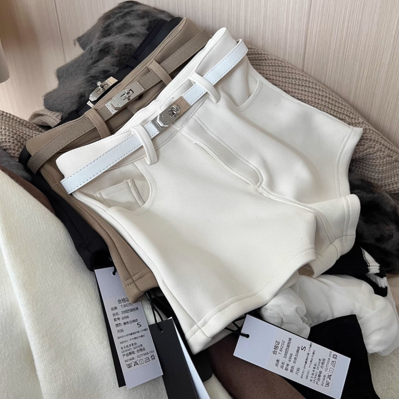 Autumn and Winter High Elastic Slim-fit High Waist Shorts Elegant Short Casual Pants Women's Outwear Thickened fleece-lined Tight Boots Pants