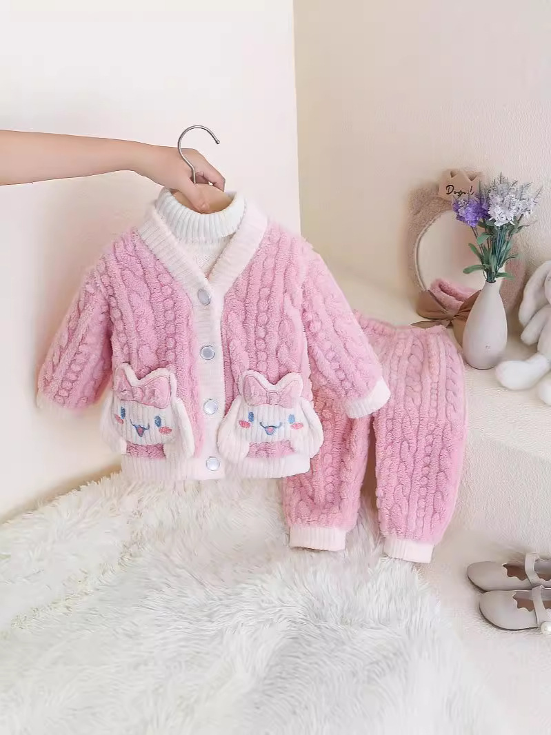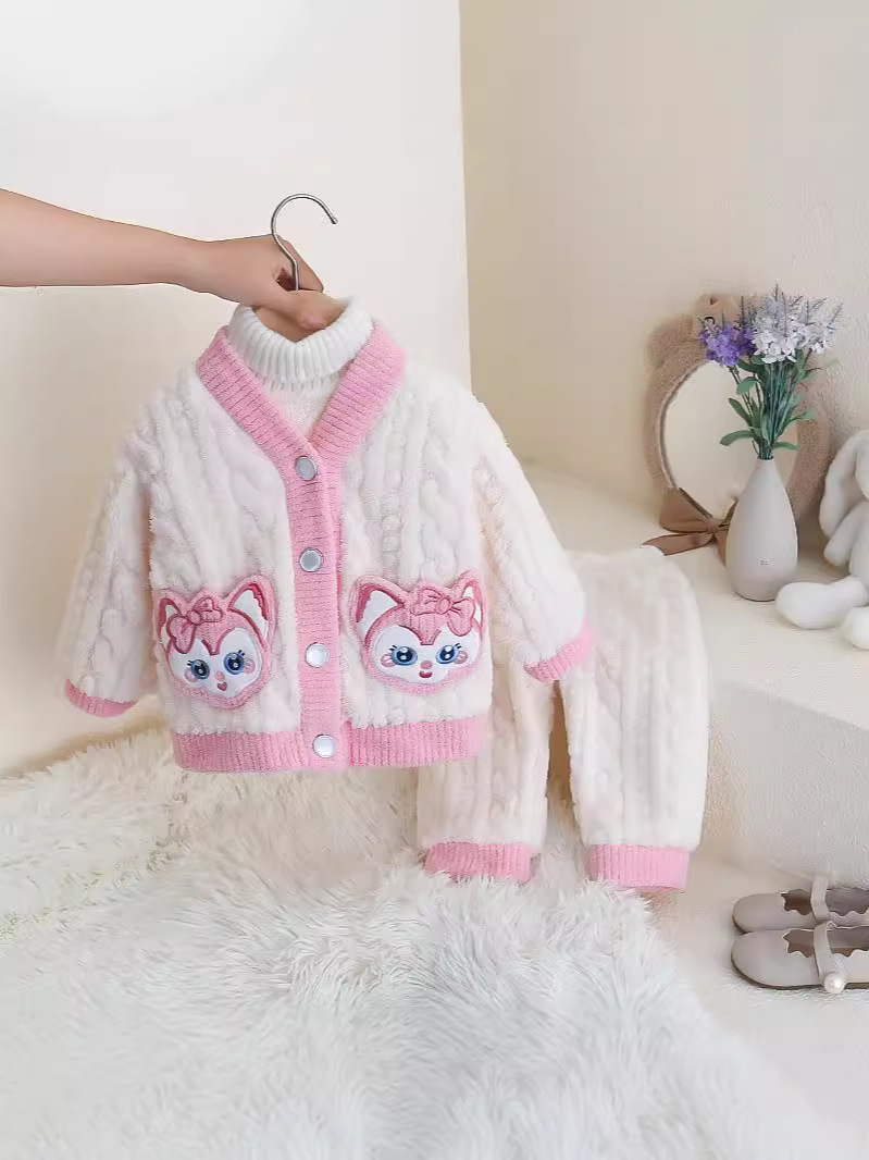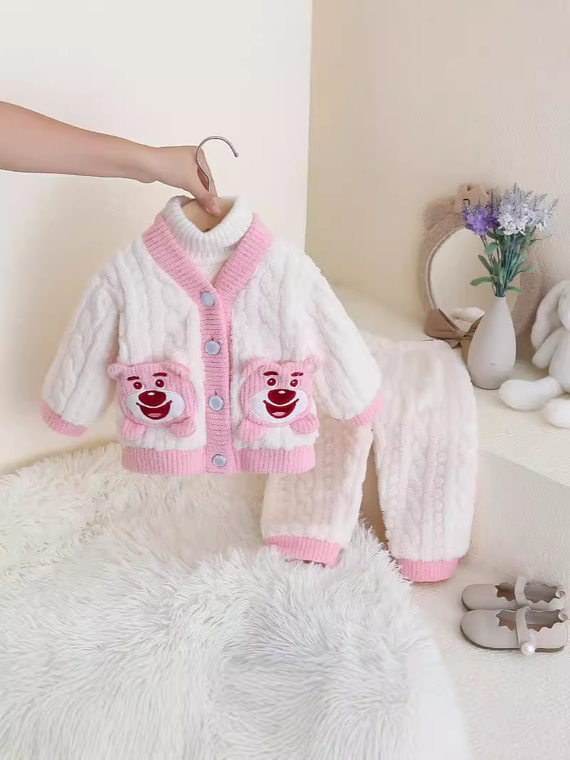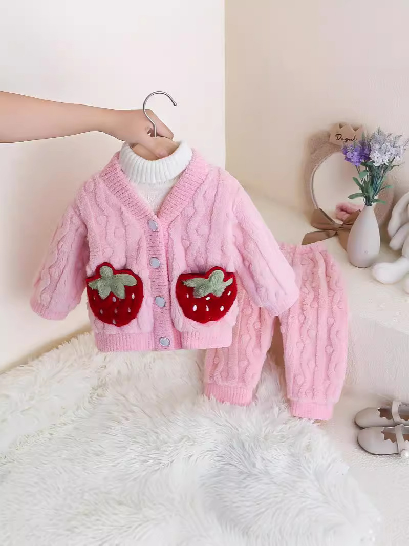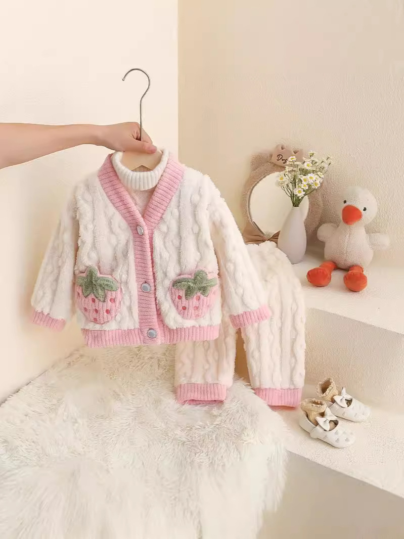 Autumn and Winter New 2025 Children's Clothing Girls' Thickened Double-Sided Velvet Home Clothes Baby Girl Cute Strawberry Pajamas Two-Piece Set