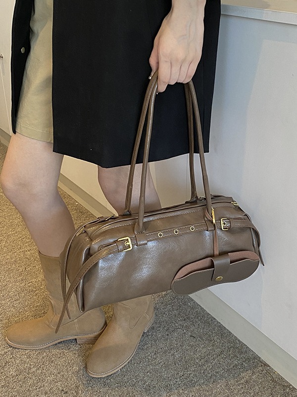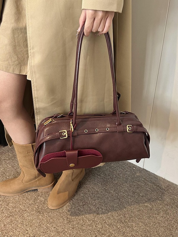 Autumn and Winter New Ankora Red All-match Belt Buckle Long One-shoulder Armpit Charter Car Style Spice Girl Bagel Bag for Women