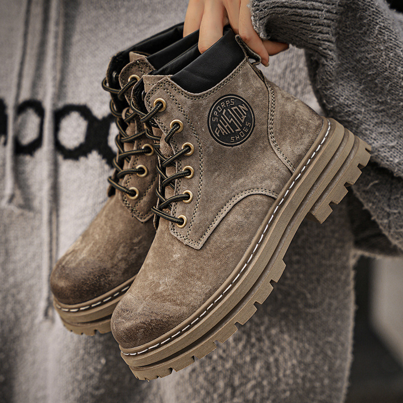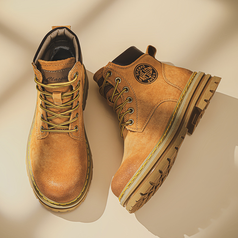 Autumn and Winter New High Version Outdoor Thick-Soled Durable Rainproof Water-Resistant Yellow Pigskin Yellow Boots