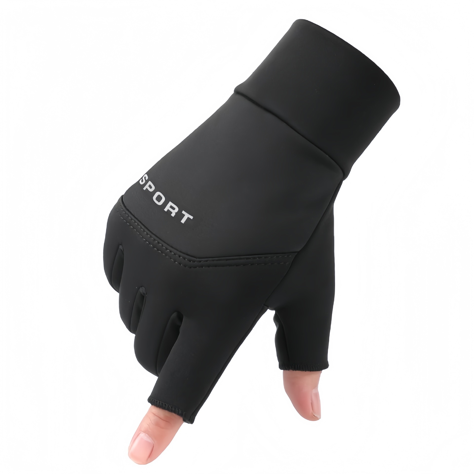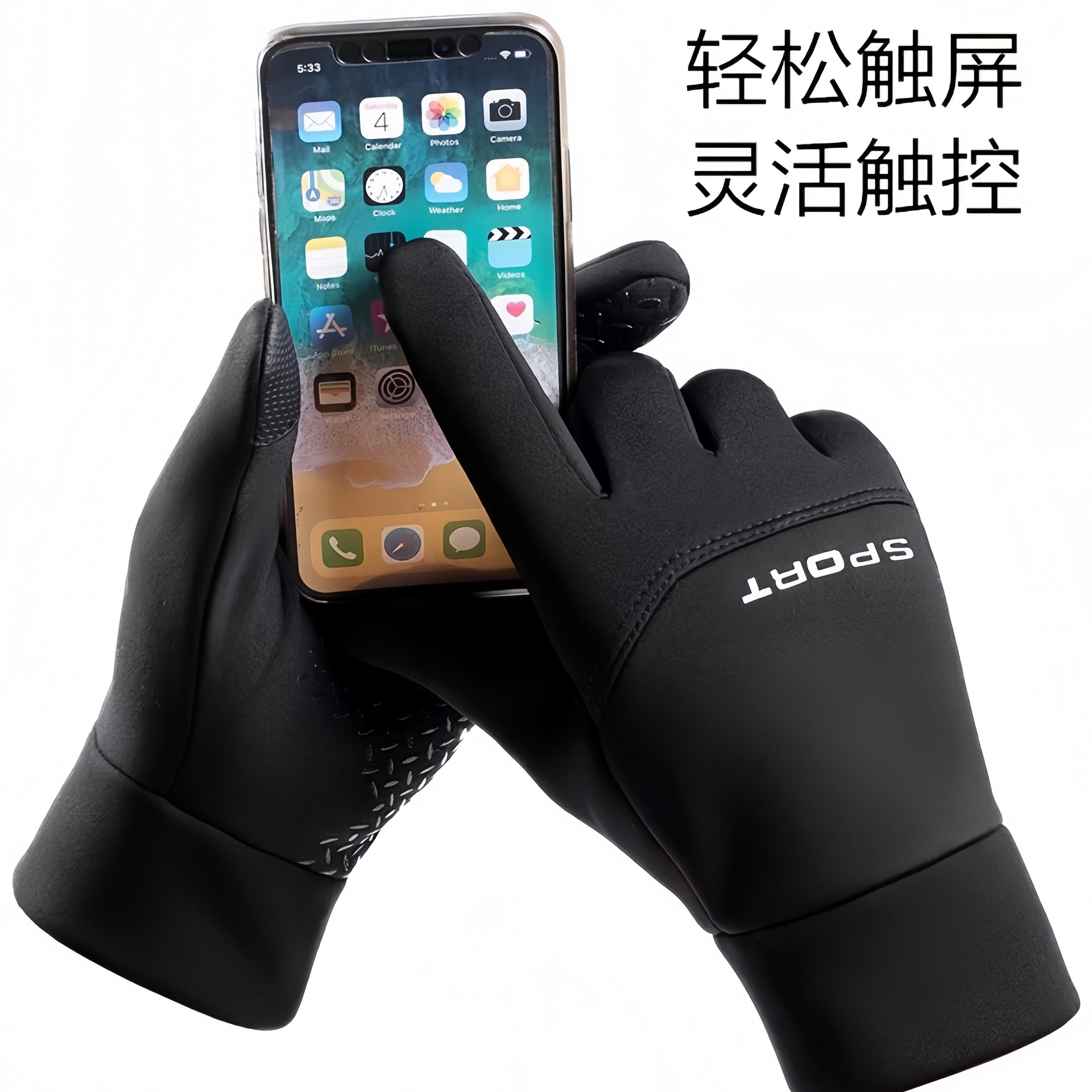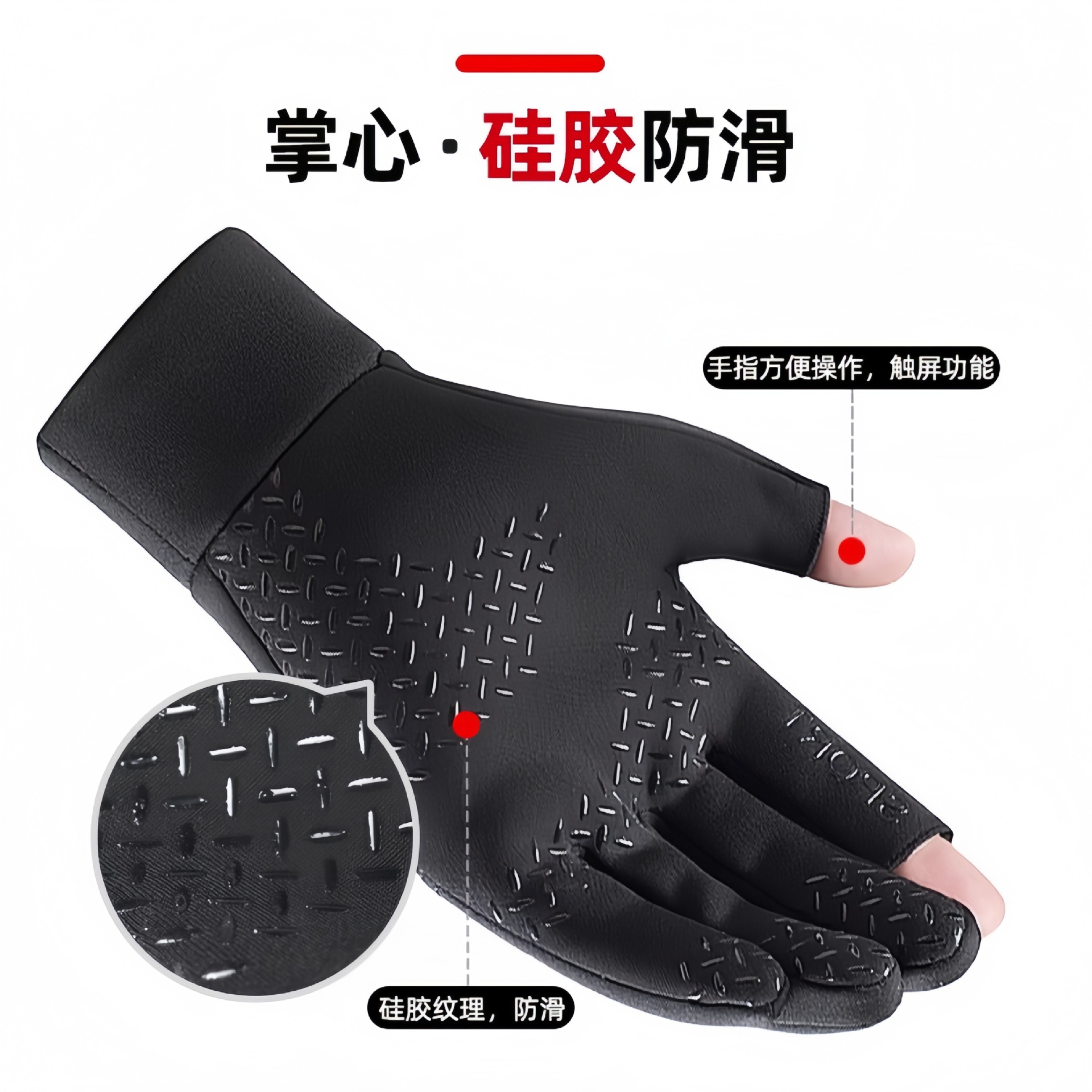 Autumn and Winter Two-Finger Exposed Velvet Thickeneded Warm Gloves for Men's Takeaway Riders, Non-Slip Driving Touch Screen, Windproof and Water Repellent