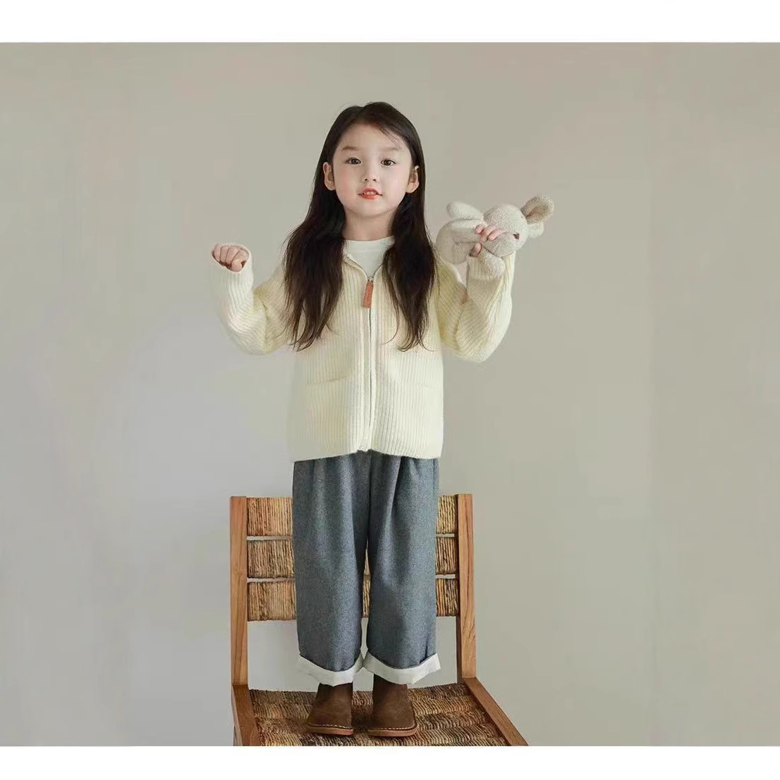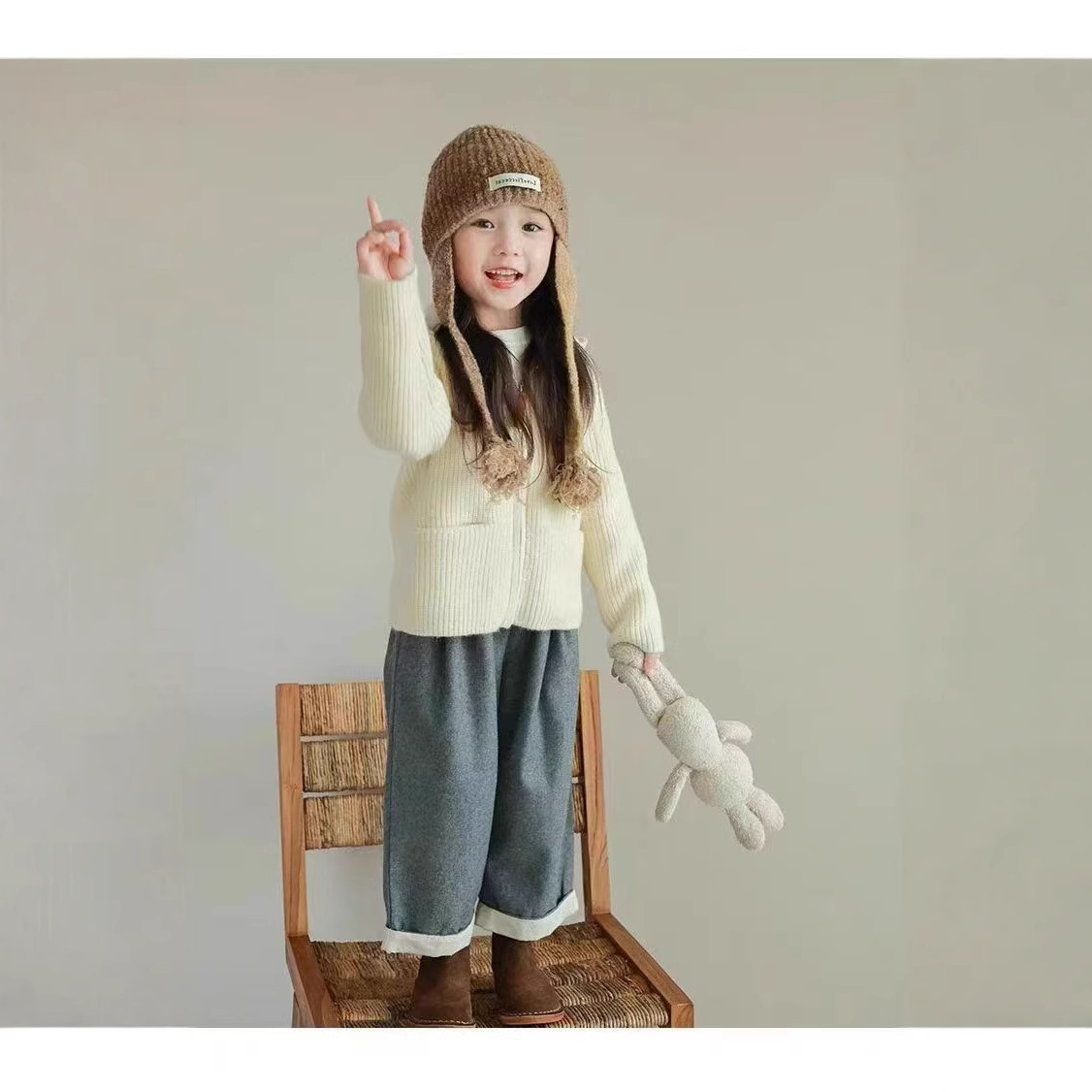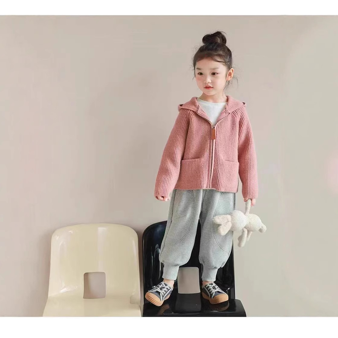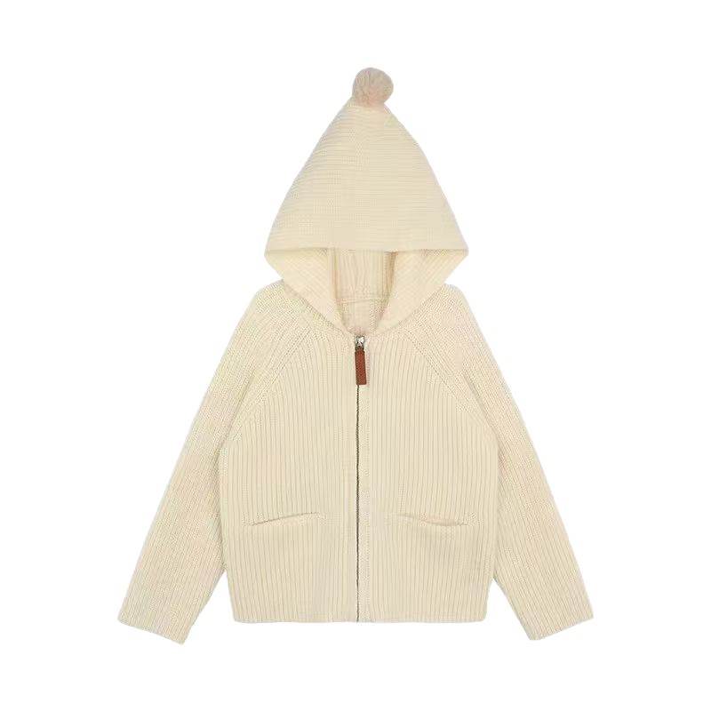 Autumn and Winter Warm Knitted Sweater Children's Coat Cute Girls' Plush Hat Zipper-Up Thickened Toddler Top