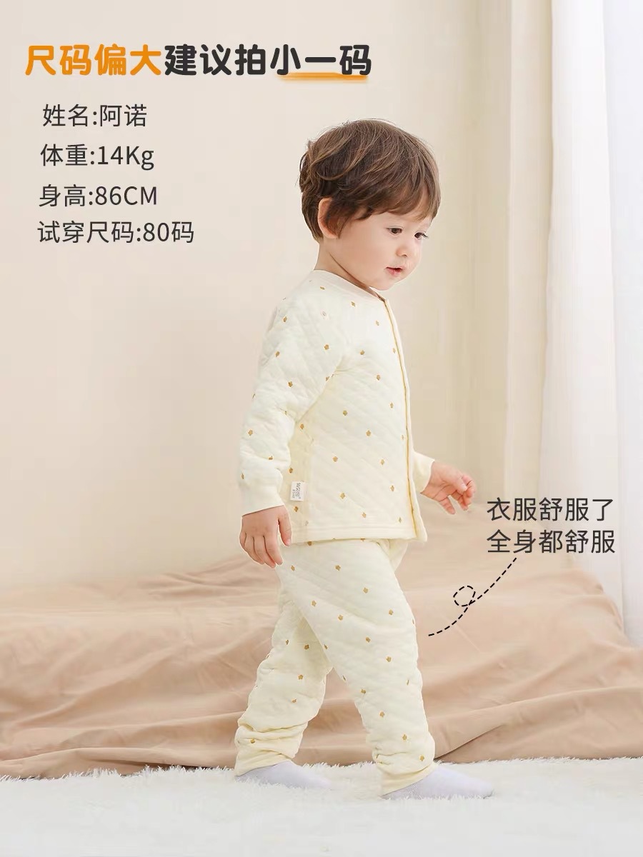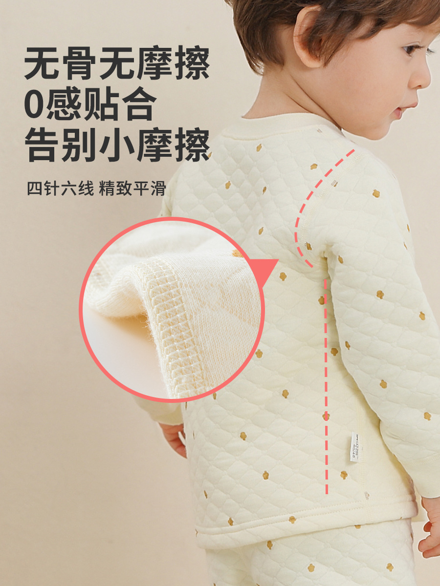Autumn and winter warm three-layer air quilted suit men's and women's baby thickened autumn clothes long pants baby children's high waist belly protection clothes