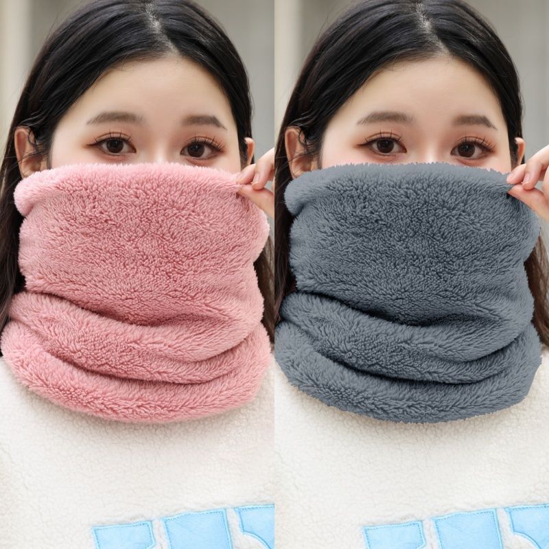 Autumn and Winter Women's Neck Scarf Fleece-Lined Thickeneded Neck Protection Warm Windproof Double-Sided Scarf Men's Cervical Spine Plush Neck Cover