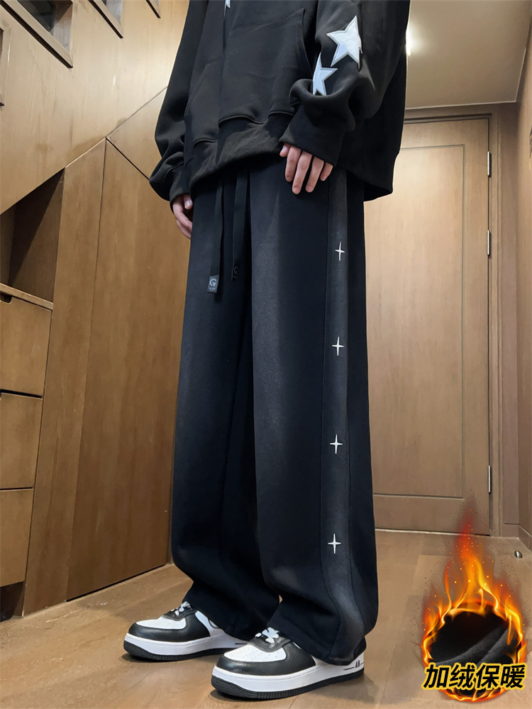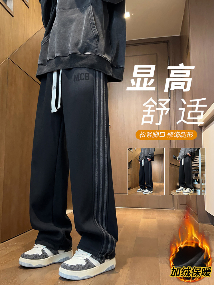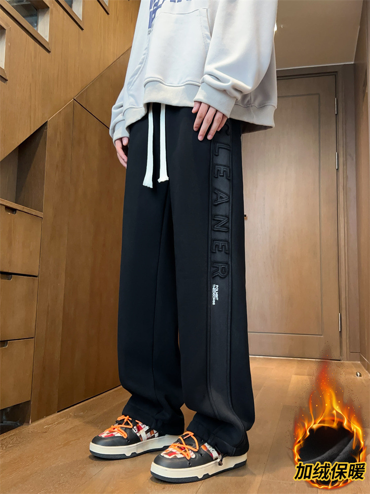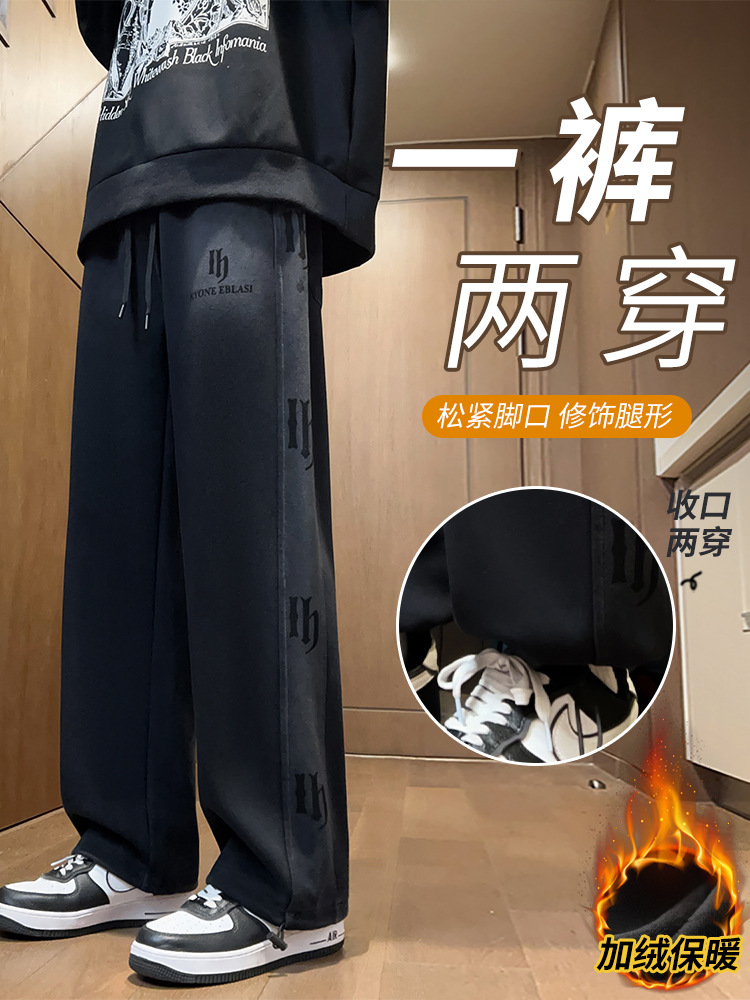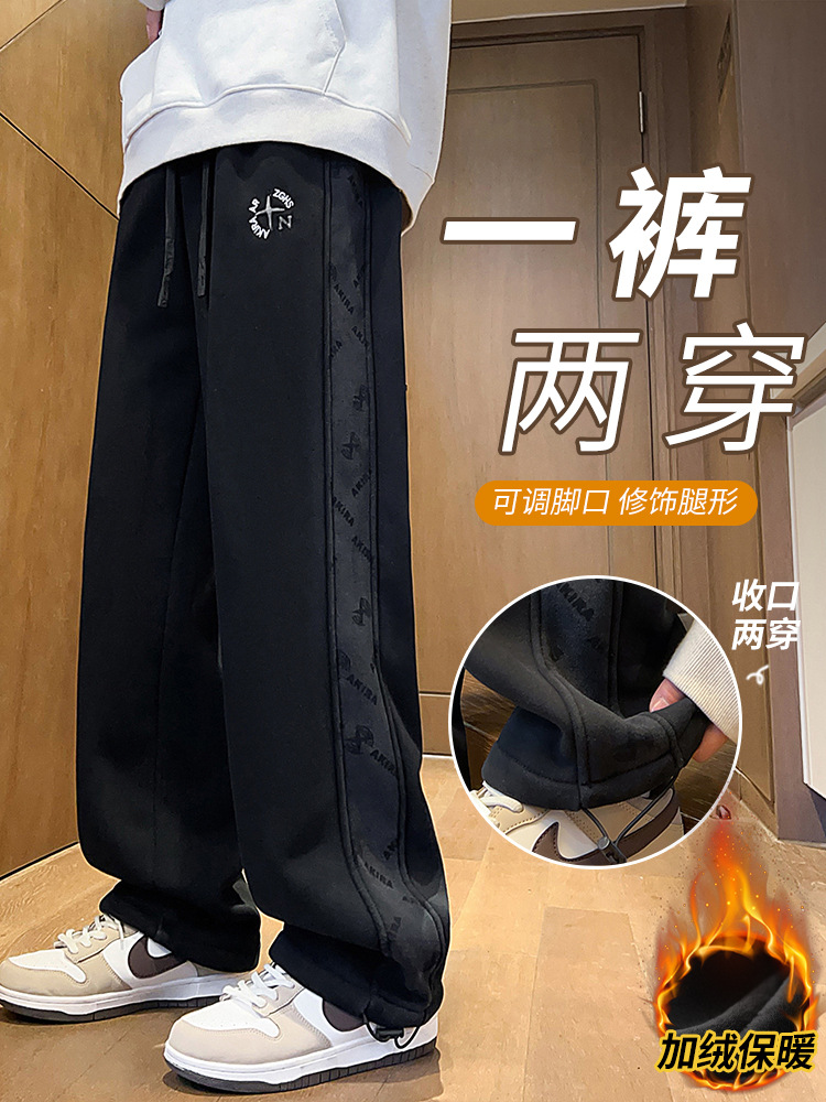 Autumn and Winter Youth Pants for Boys, Middle and High School Students, Trendy and Handsome Casual Sports Pants, Velvet and Thickeneded Sweatpants
