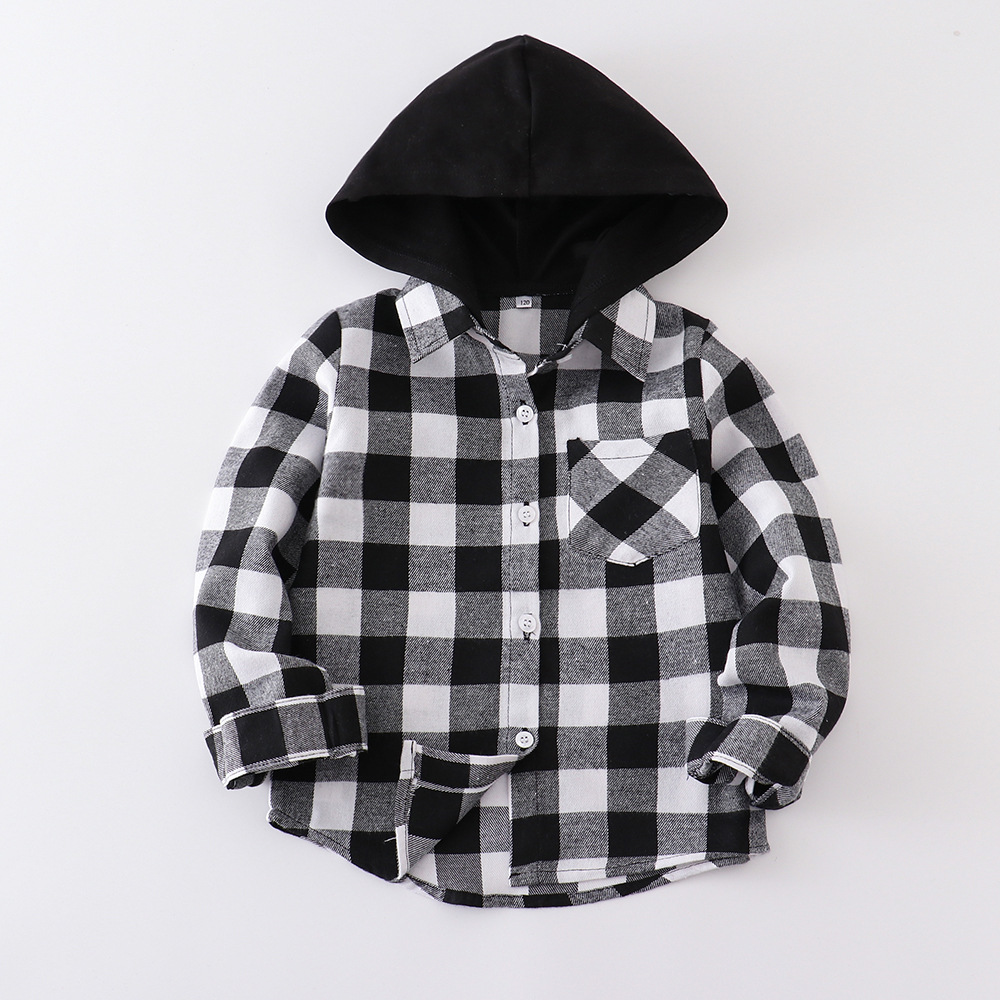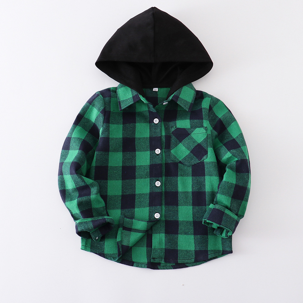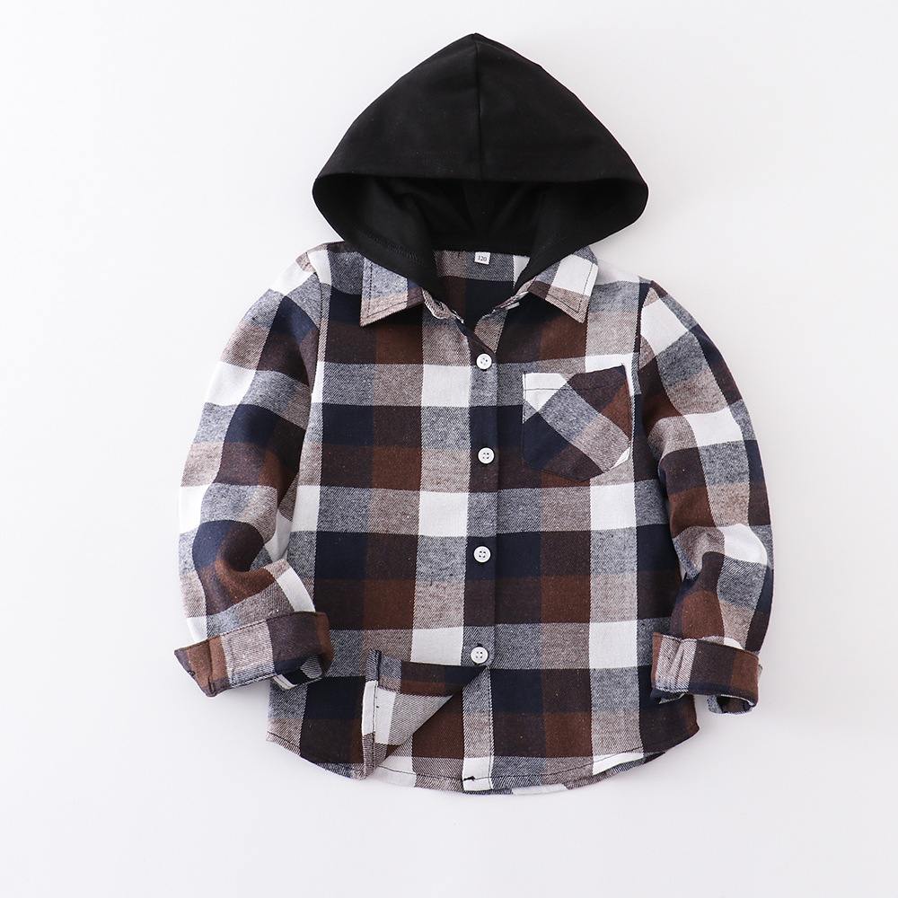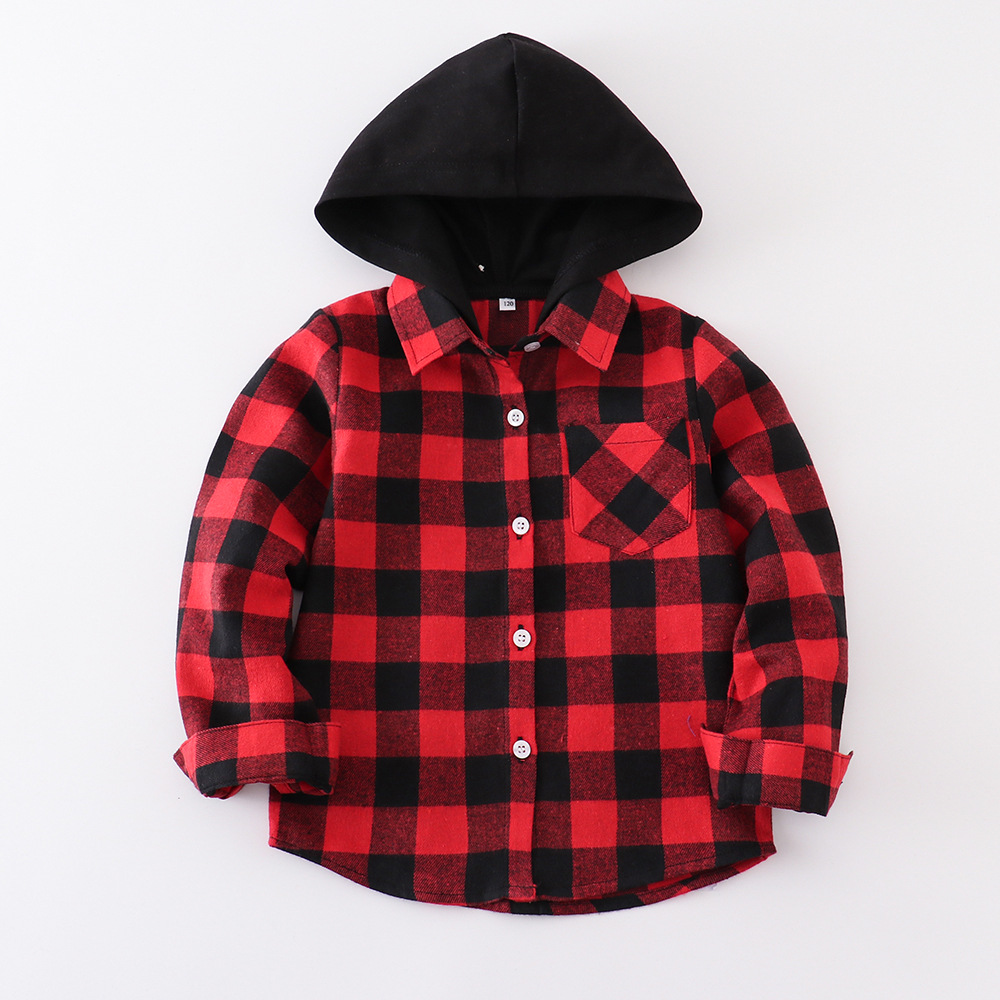 Spring and Autumn new children's hooded plaid shirt baby boys' square Plaid baby top Korean style red coat