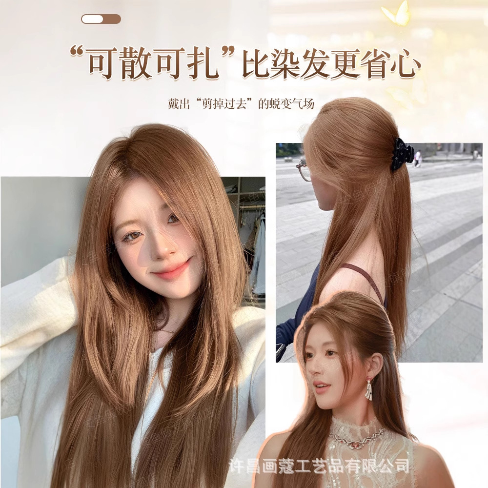 [Autumn Latte] Full Wig for Women, Same Style as Xu Yan, with Lace Front, Natural Long Straight Side-Parted Wig