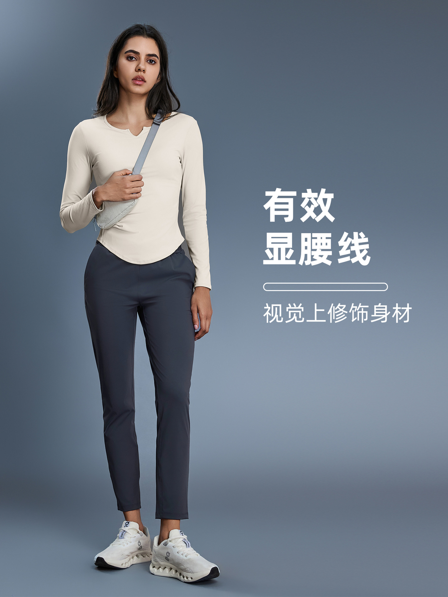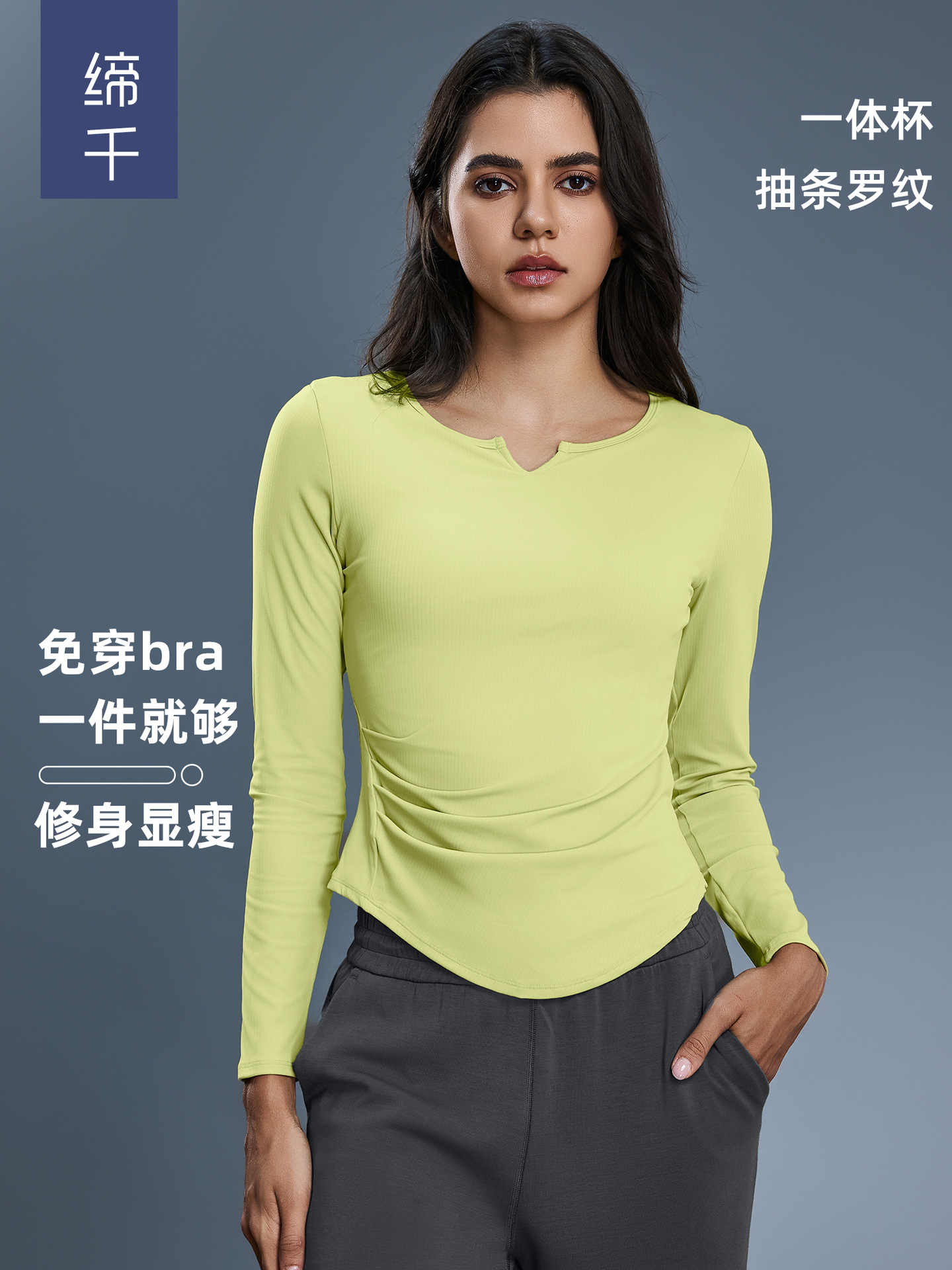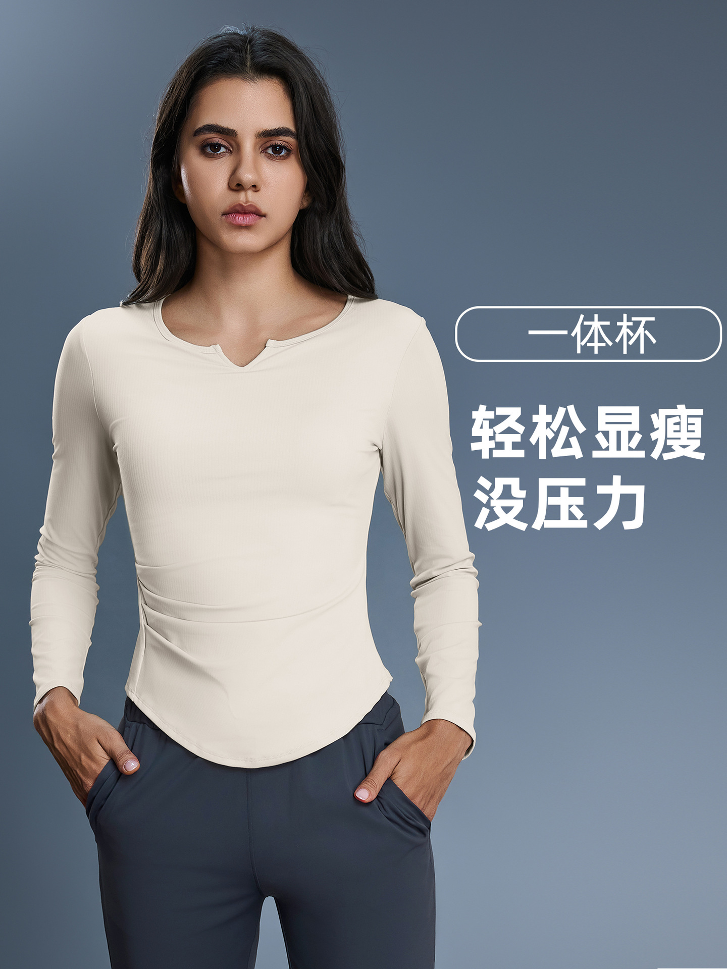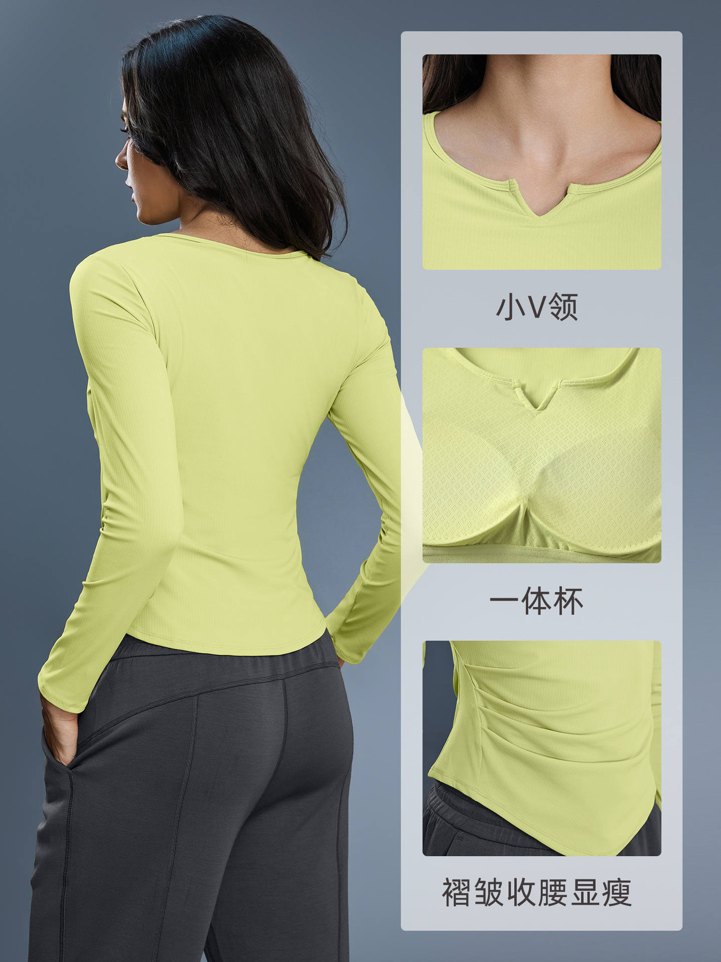Autumn Sports Tops for Women V Neck Elastic Slimming Look Yoga Clothes with Chest Pads Fitness Long-Sleeved T-Shirt D25175