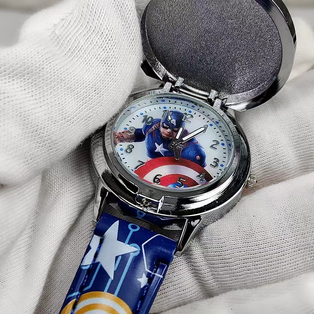 Avengers Anime Cartoon Boy Watch Marvel Children Student Captain America Flip Quartz Boy