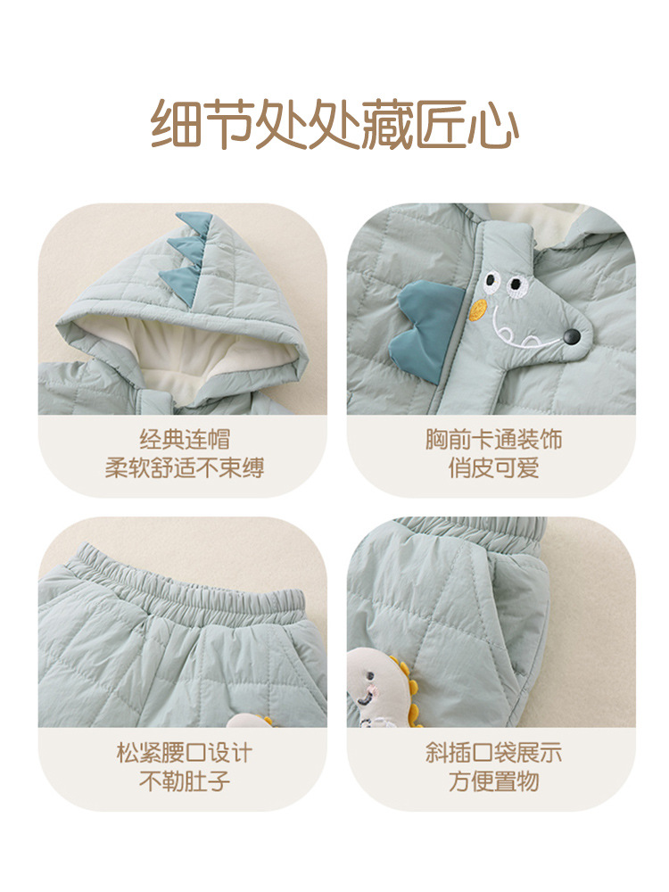 Baby Autumn and Winter Clothes Two-Piece Set 2025 New Style A-Class Cartoon One-Year-Old Boy Thin Cotton Warm Cotton Clothing Set