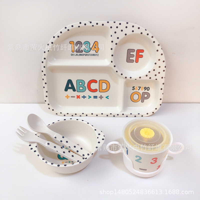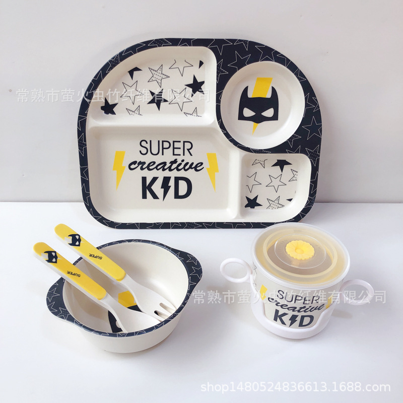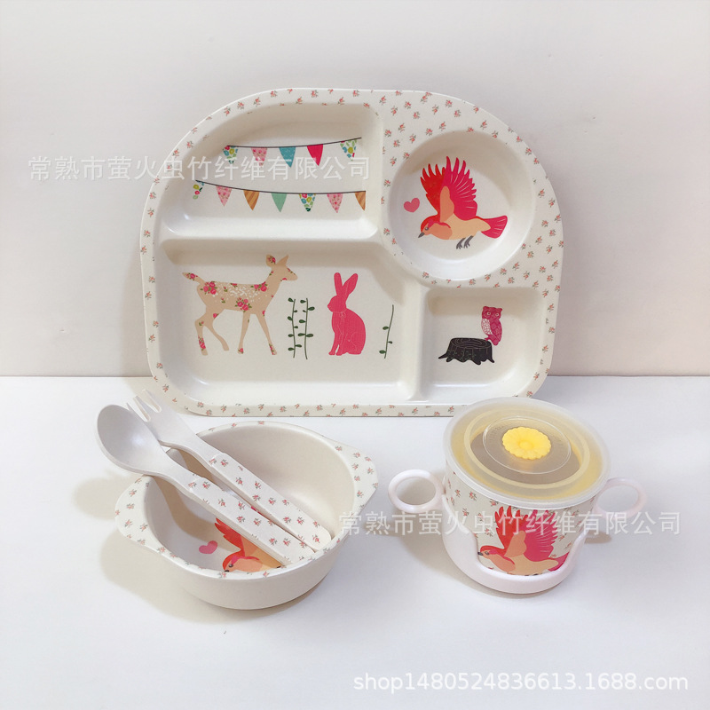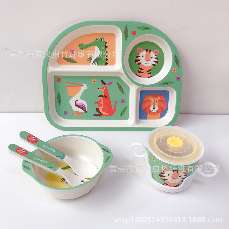 Baby bamboo fiber separated plate suit children's cartoon creative plate Bowl Cup fork spoon kindergarten restaurant tableware