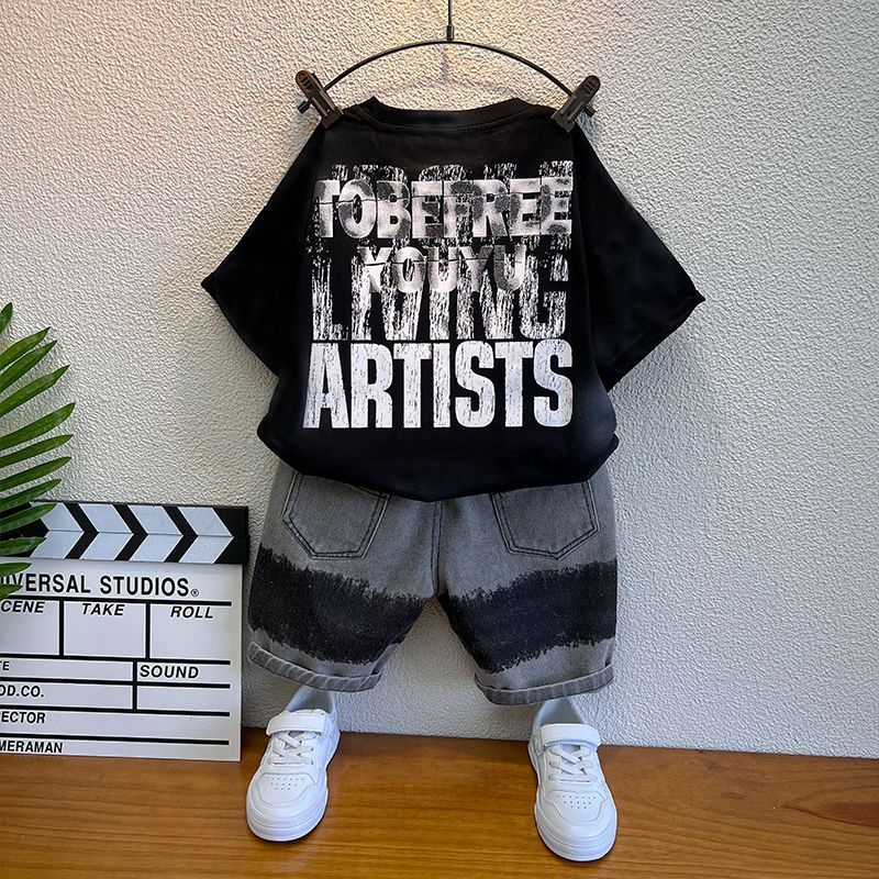 Baby Boy Summer Suit Little Boy Cool and Handsome Summer Suit 2025 New Kidsren's Short-Sleeved Boy Handsome and Fashionable Two-Piece Suit