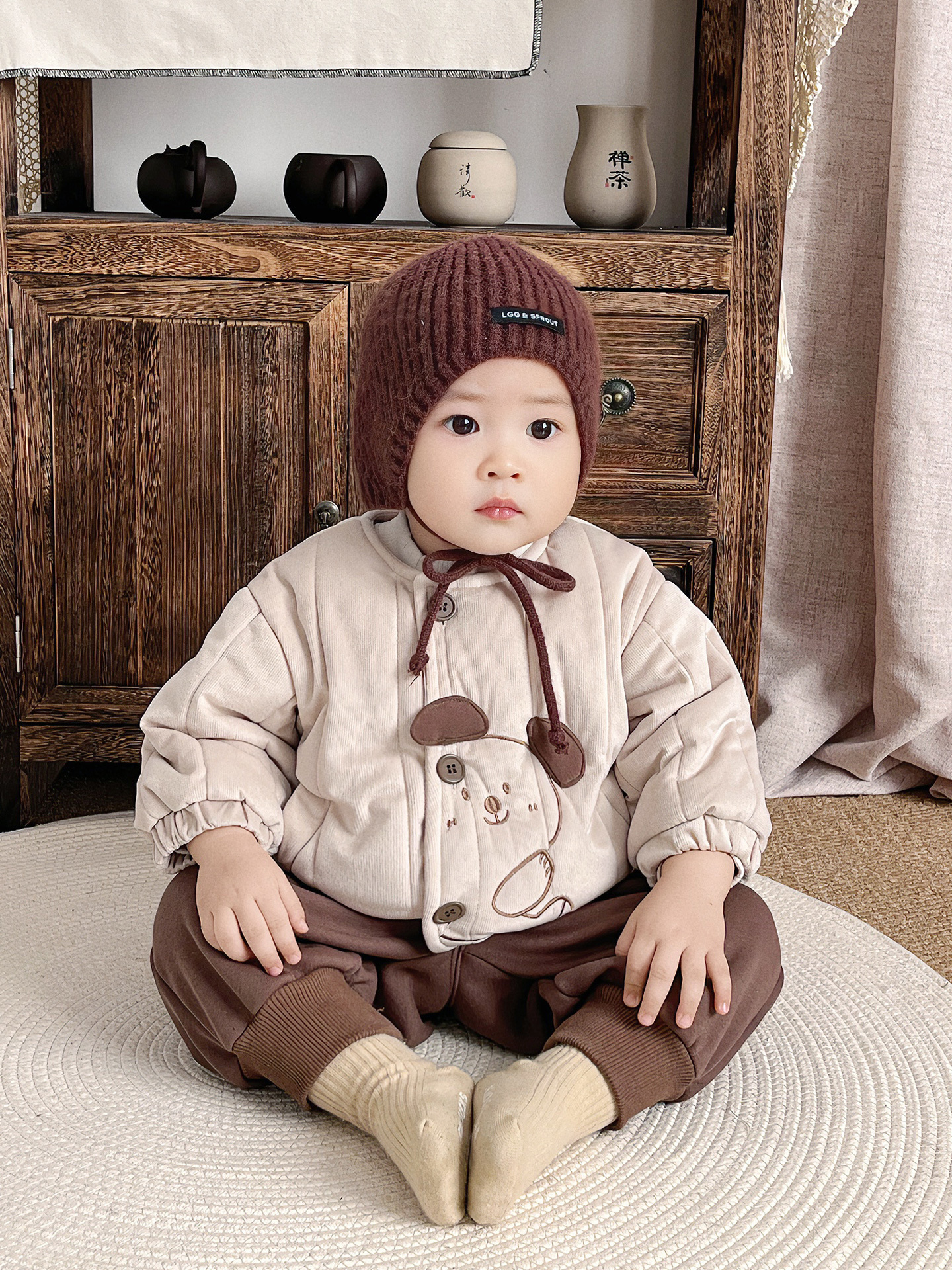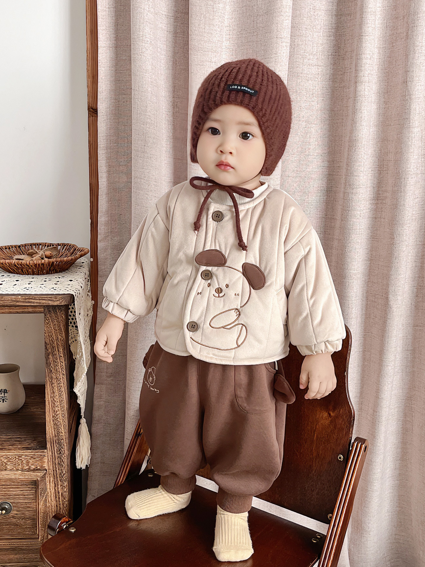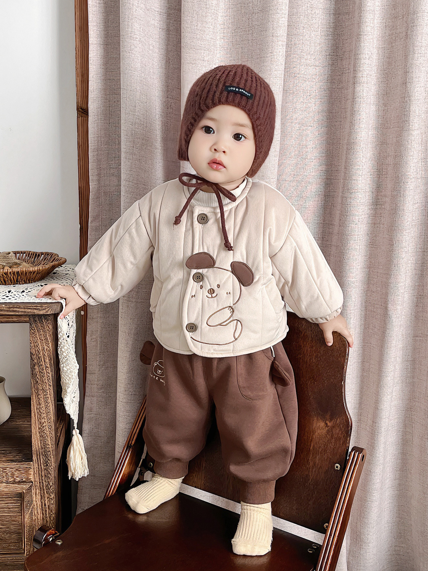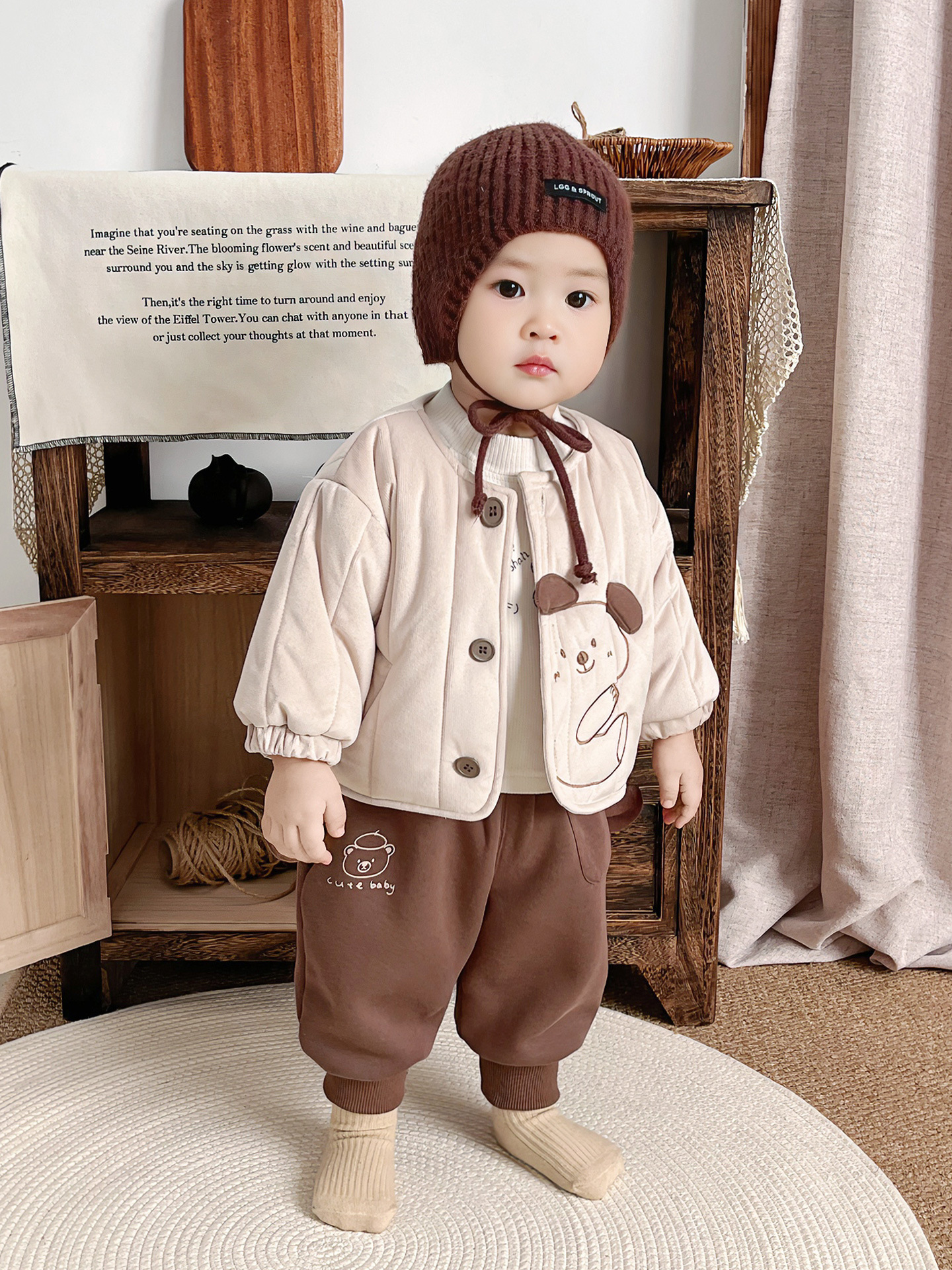 Baby Boy's Late Autumn Quilted Long-Sleeved Cartoon Cute Suit for Infants and Young Children, Autumn and Winter Outing Style Two-Piece Set