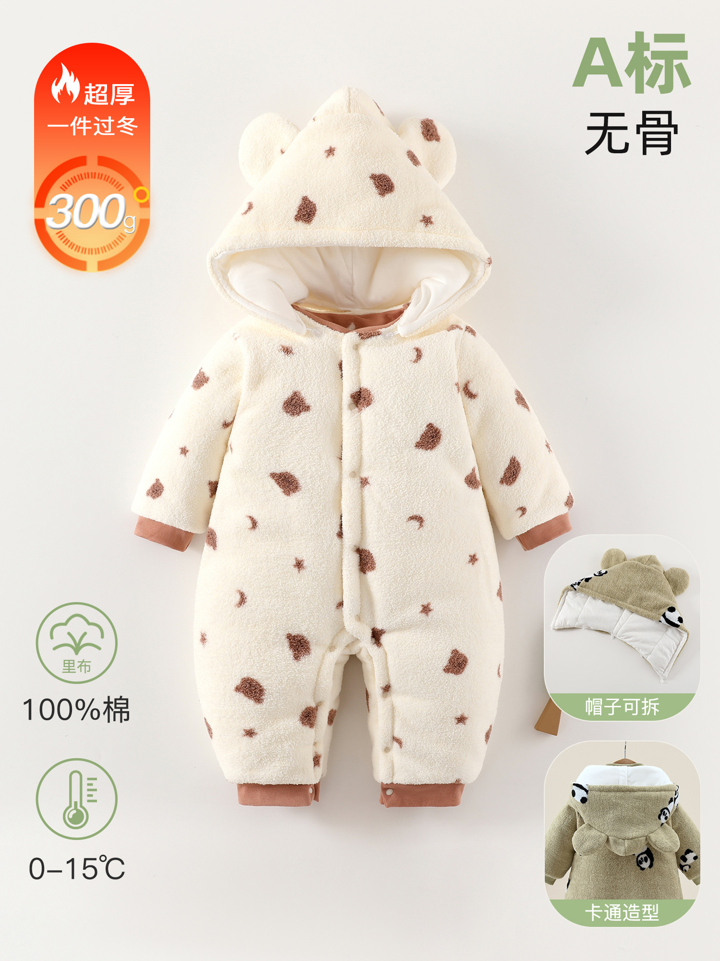 Baby clothes class a cotton-padded jacket baby jumpsuit 300g cotton padded autumn and winter thickened outfits newborn climbing clothes