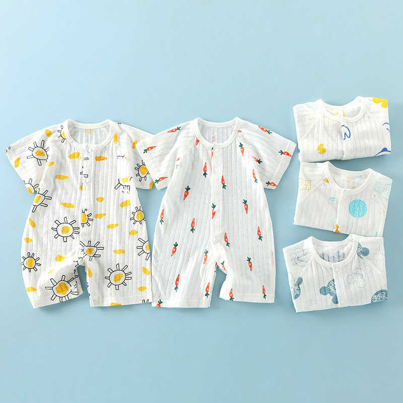 Baby Clothes Summer Thin Women's Short-sleeved Newborn Baby Boy's Pajamas Class A Pure Cotton Hare Short-sleeved Jayshirt