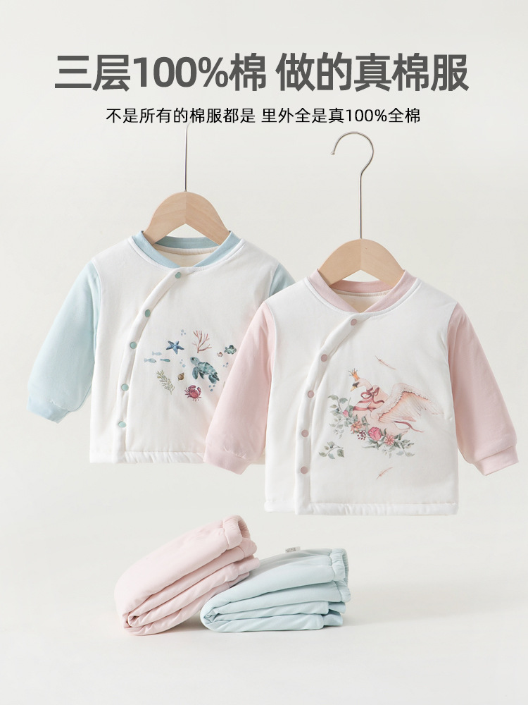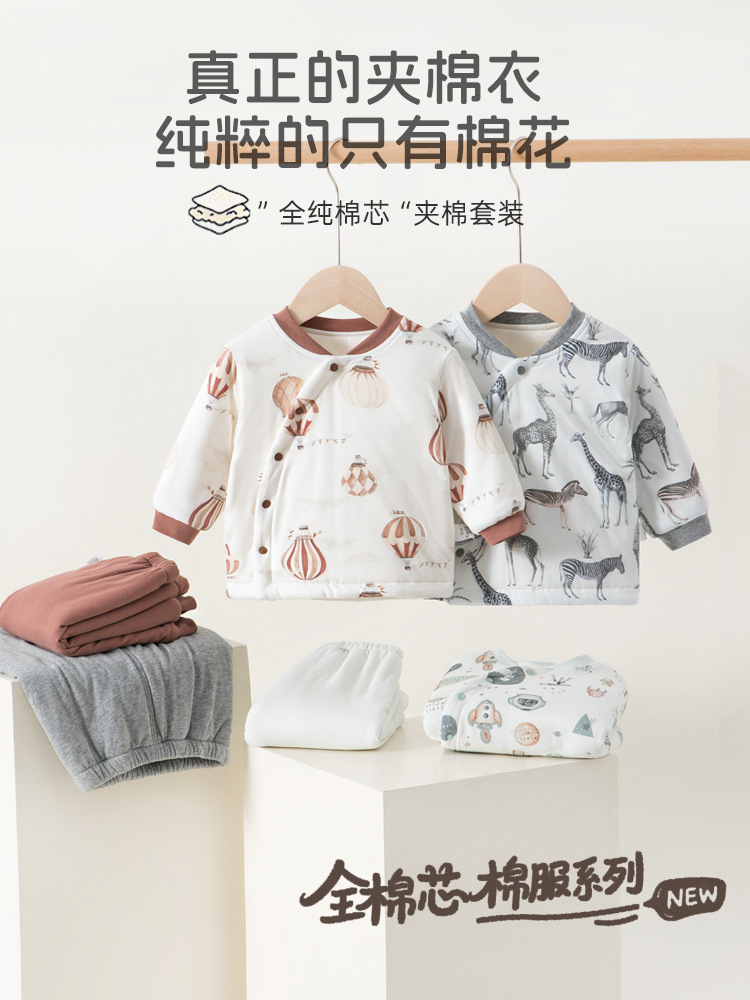 Baby Cotton Clothing Set Winter Outfit Infant Pure Cotton Warm Thickened Autumn and Winter Split Padded Clothes Children's Cotton Jacket and Pants
