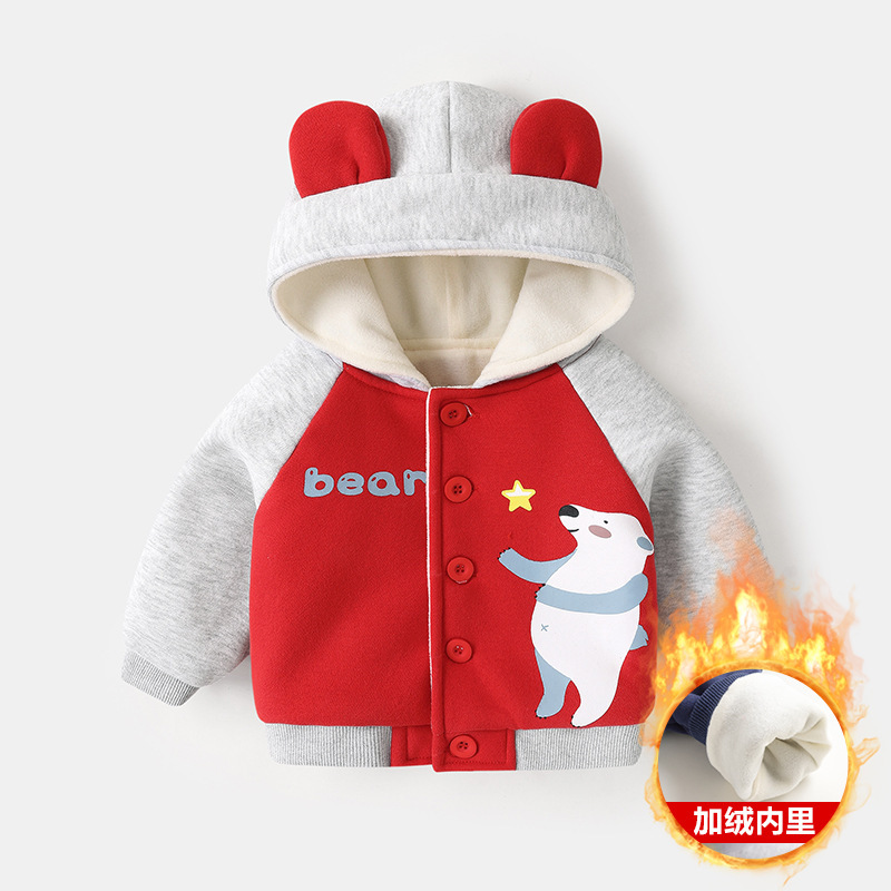 Baby fleece-lined Hooded Coat Autumn and Winter 0 Female Baby 1 Year Old 3 Toddler Winter Clothes Boy's Cotton-padded Coat Thickened Top Cotton-padded Coat