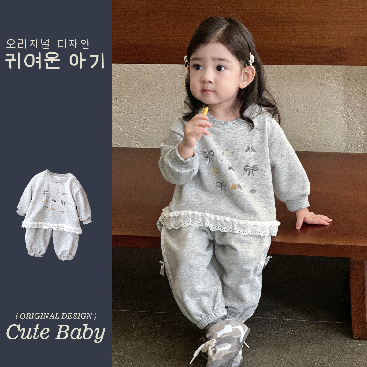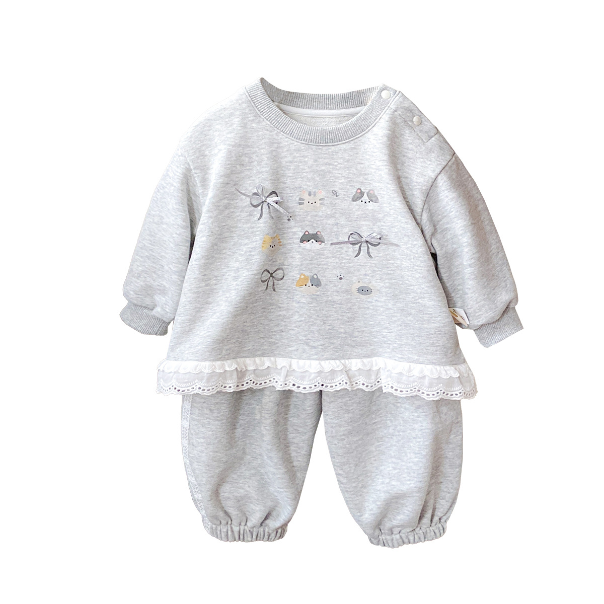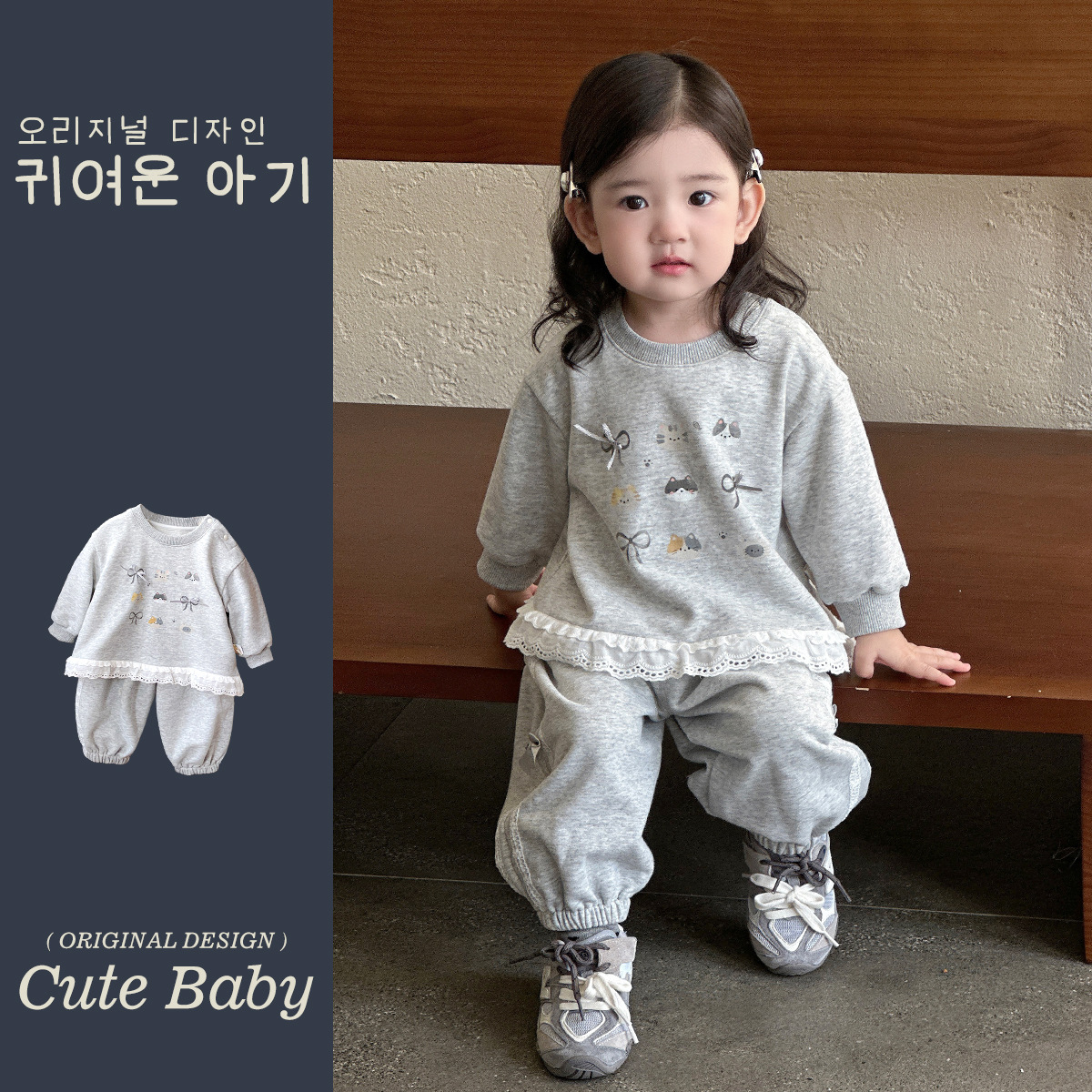 Baby Girl Autum Suit 2025 New Baby Sweet Bow Korean Style Two-Piece Set Infant and Toddler Style Sweatshirt