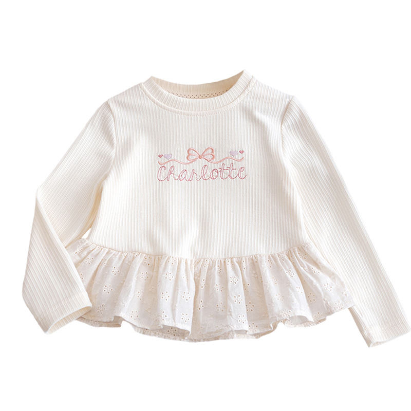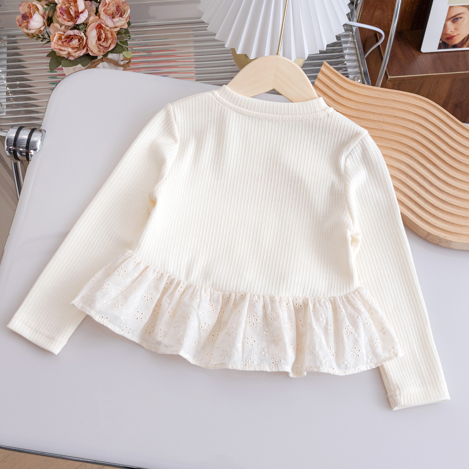 Baby Girl's Fashionable Top with Lace Skirt for Small and Medium-Sized Kidsren New Autum T-Shirt Girl's Textured Pit Strip Bottoming Shirt 3