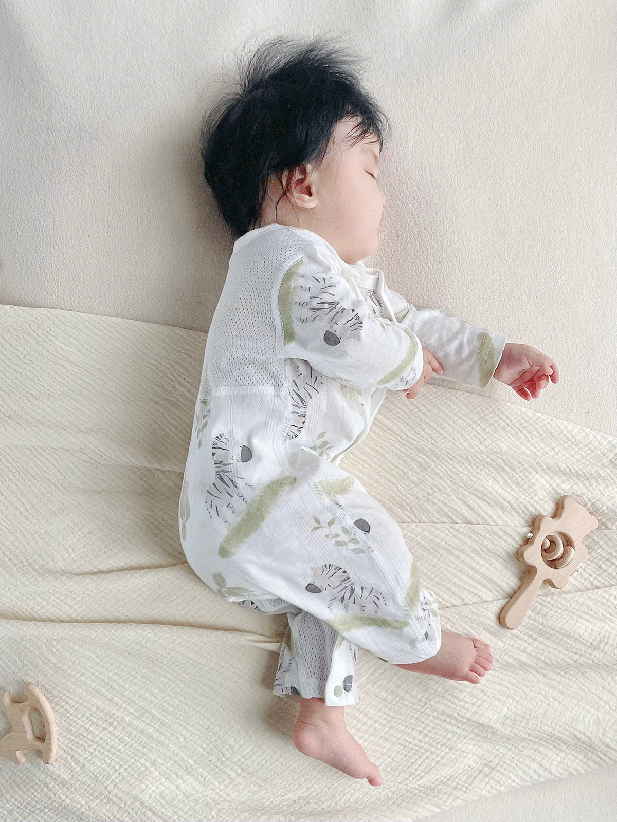 Baby jumpsuit summer thin mesh breathable summer baby air conditioning clothing class A cotton newborn clothes