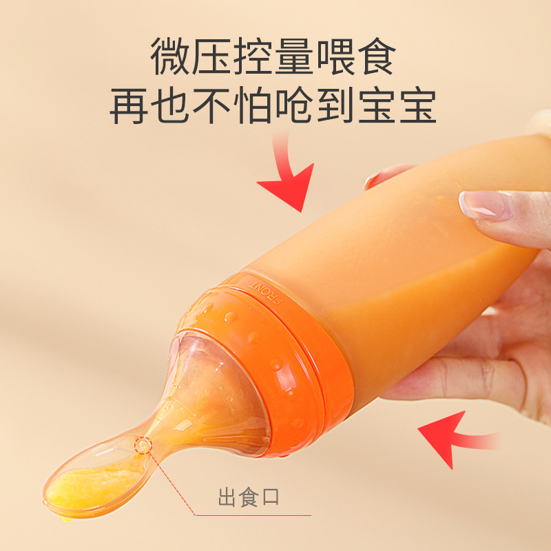 Baby silicone rice paste spoon bottle squeeze feeding spoon silicone soft spoon rice flour baby food supplement tools wholesale