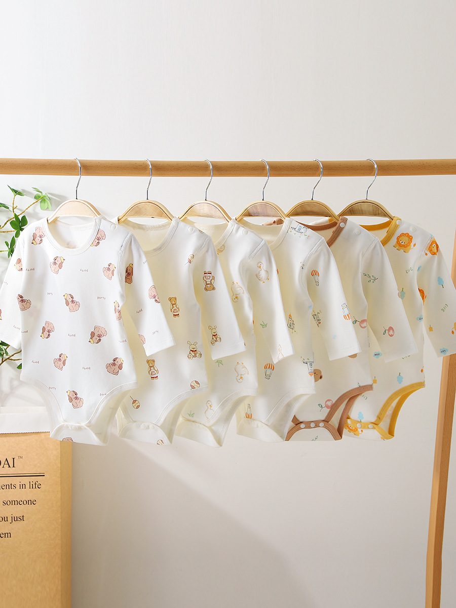 Baby's Fart Wrap Pure Cotton Class A Newborn Clothes Spring and Autumn Boys' and Baby's Unibody Clothes Women's Triangle Climbing Clothes Long Ha-ha Clothes